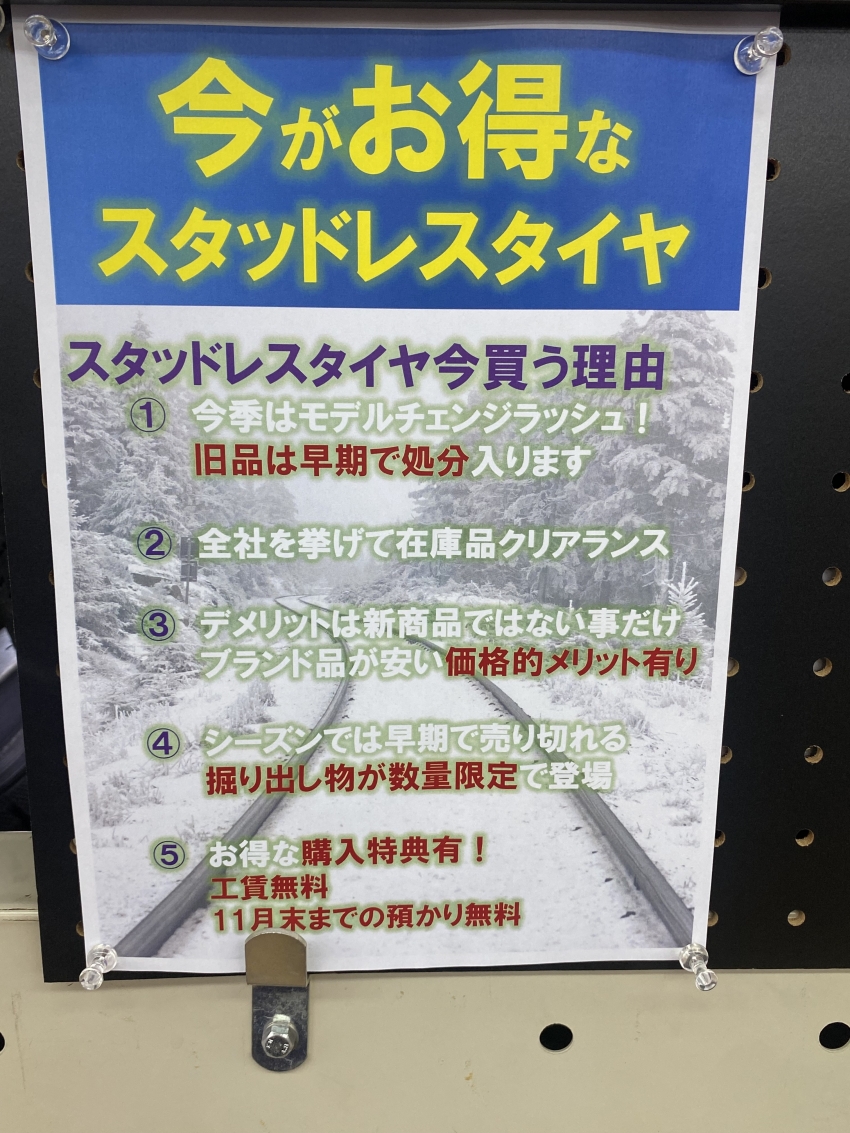 スタッドレスタイヤ買うなら今がベストなタイミングです\(^o^)/