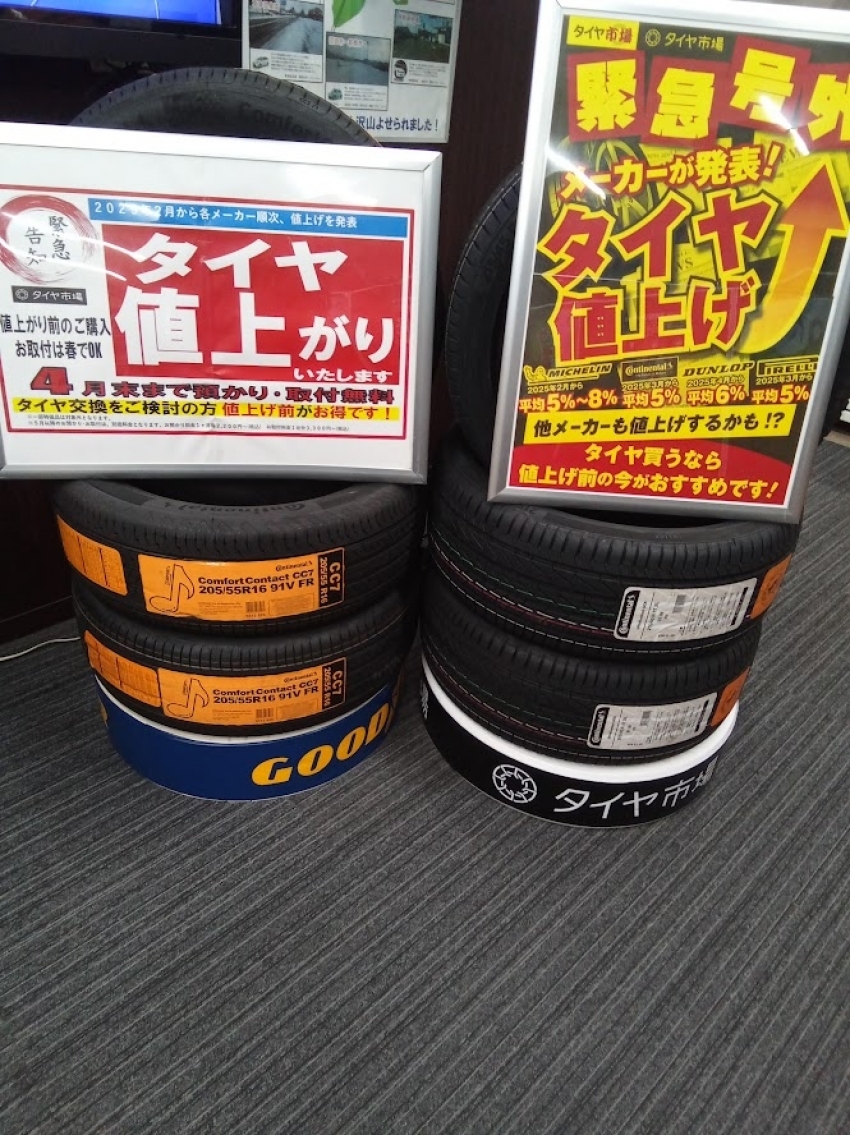 タイヤまでも値上げになってしまいます!