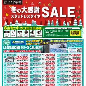 10/4よりタイヤ市場各店でスタッドレスタイヤ・オールシーズンタイヤの一斉セールを開催いたします。