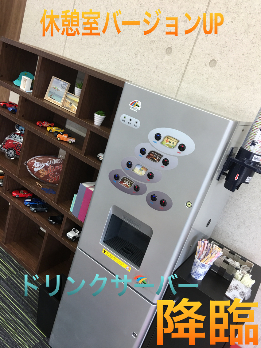 当店の休憩スペースに大きなドリンクサーバーが降臨いたしました!!