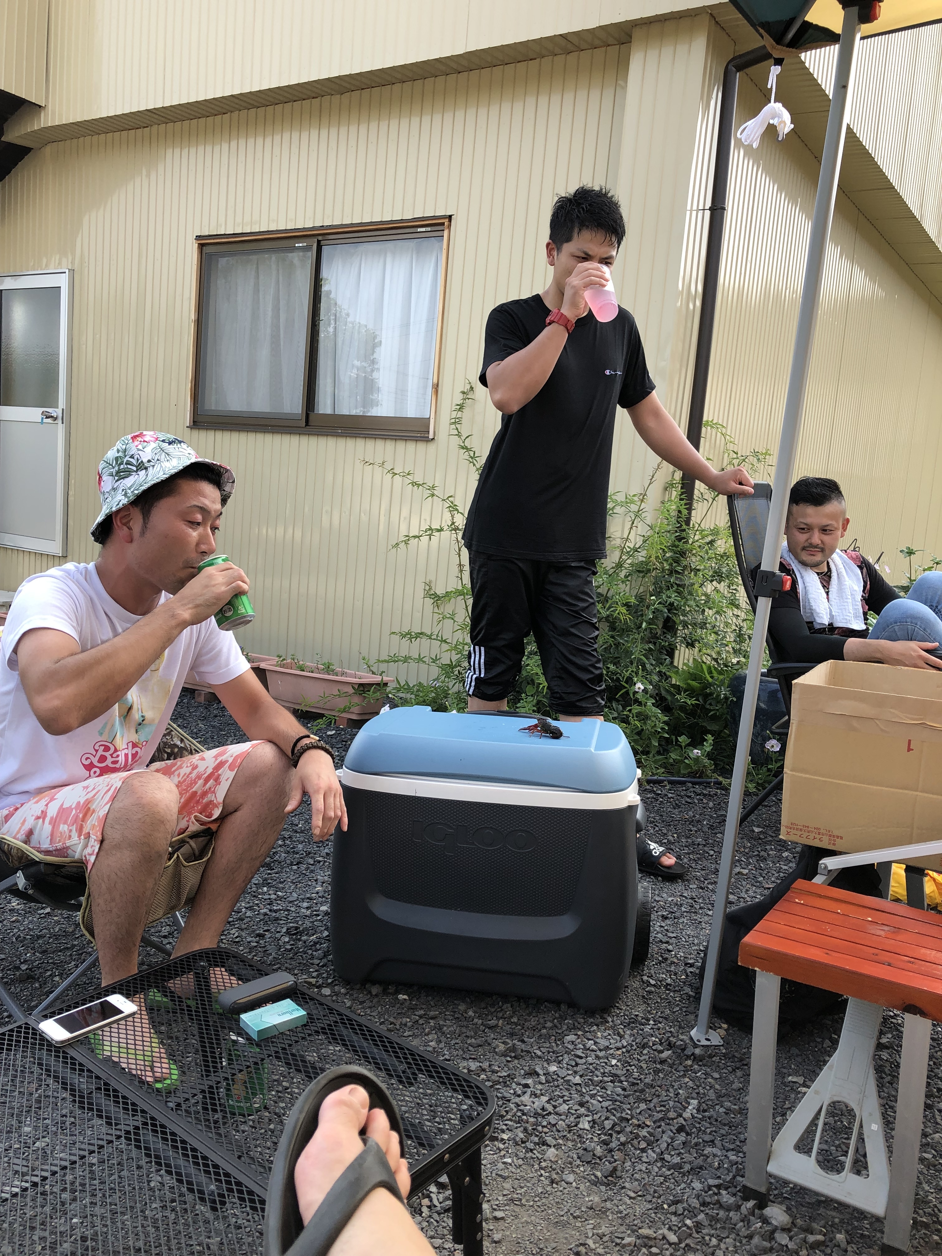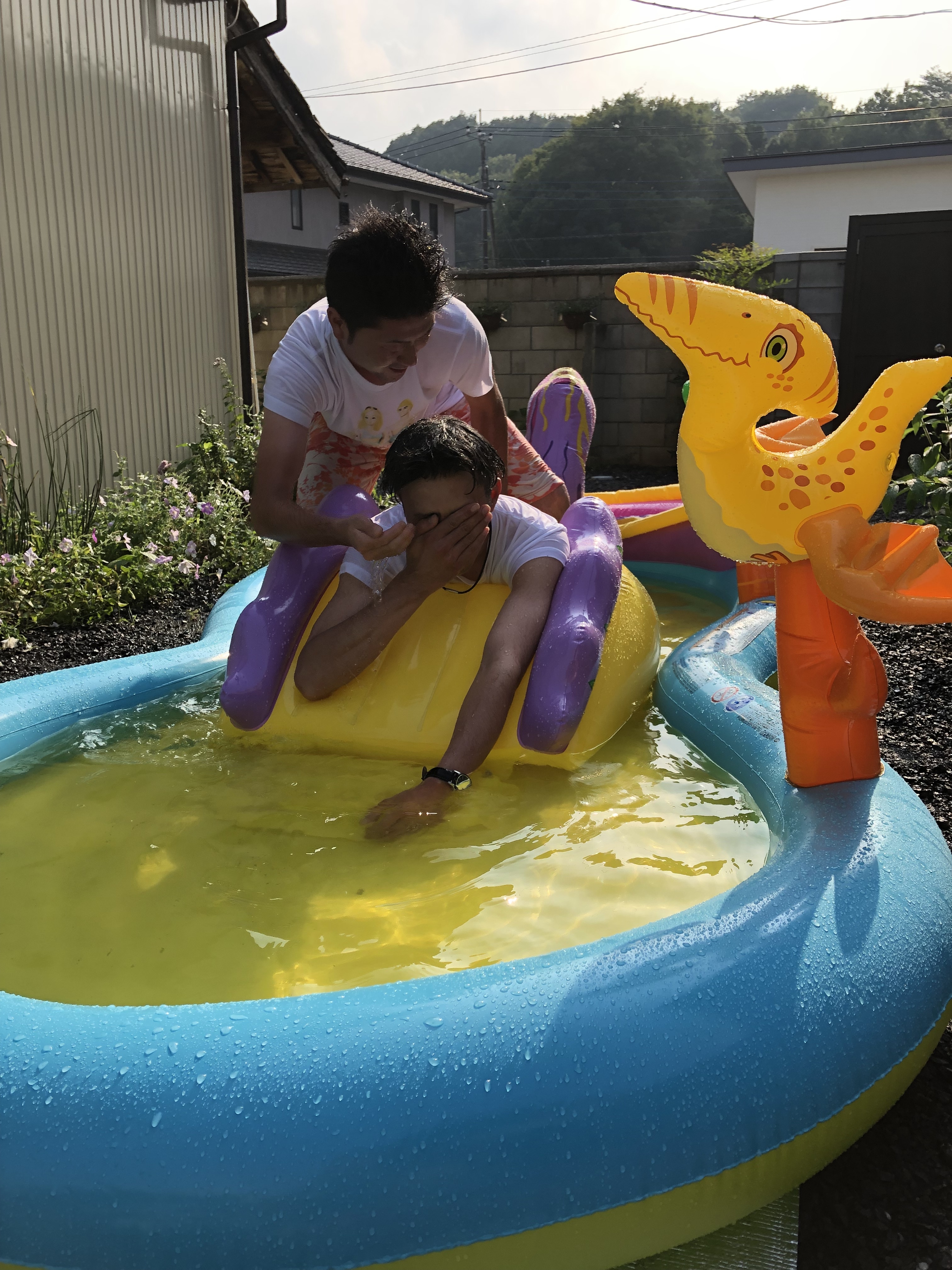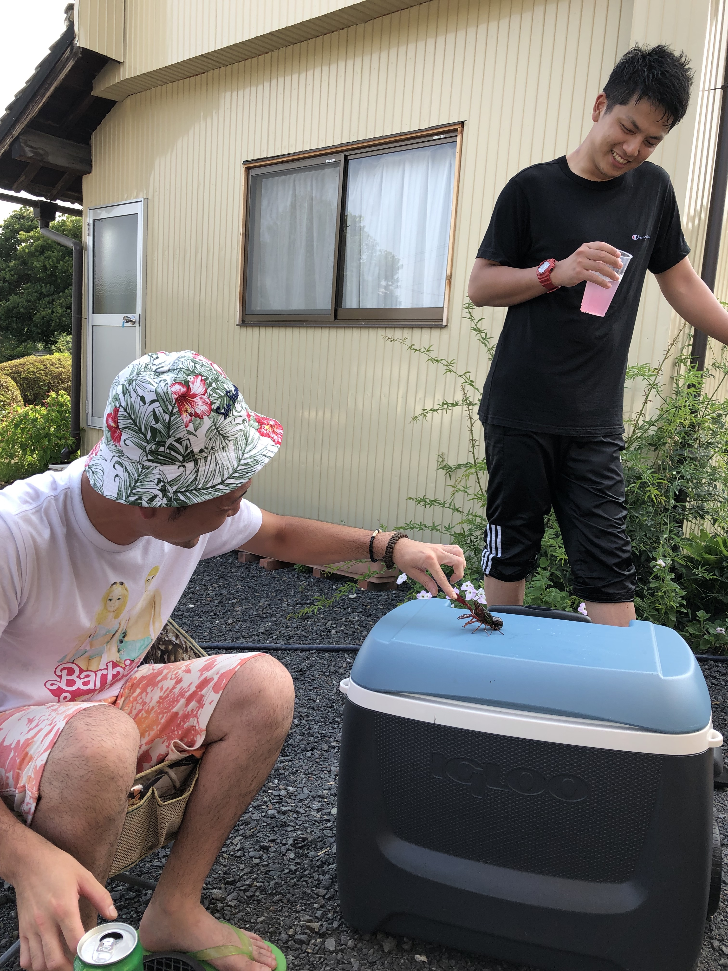 ザリガニと戦う者、子供用プールではしゃぐ者。。。笑