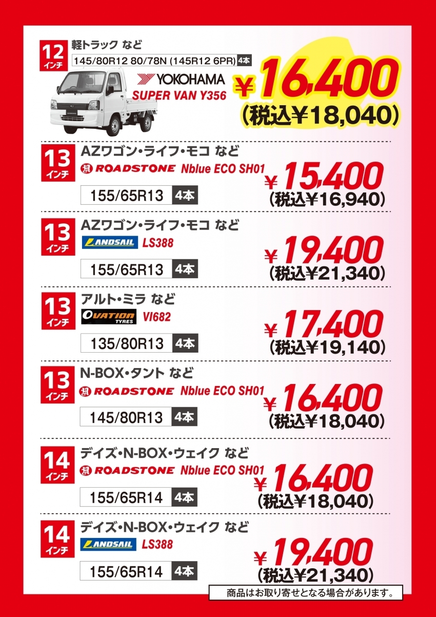 かなりの激安タイヤ、春の特別キャンペーンなので