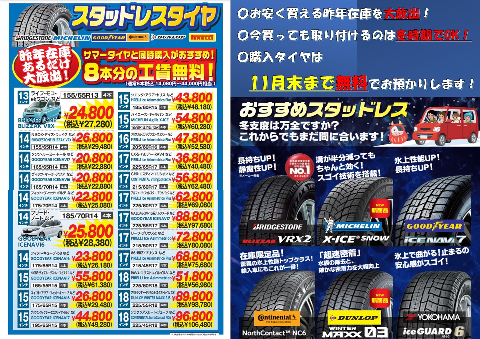 タイヤ市場では冬タイヤの早期販売を開始しました!