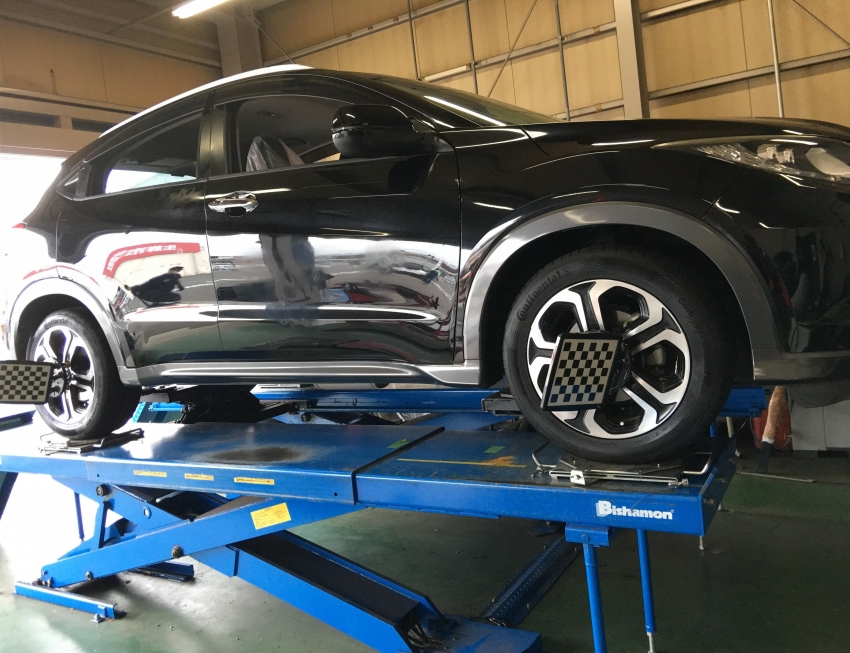 本、ホンダ ヴェゼルのオーナー様よりホイールアライメント調整させて頂きました!!