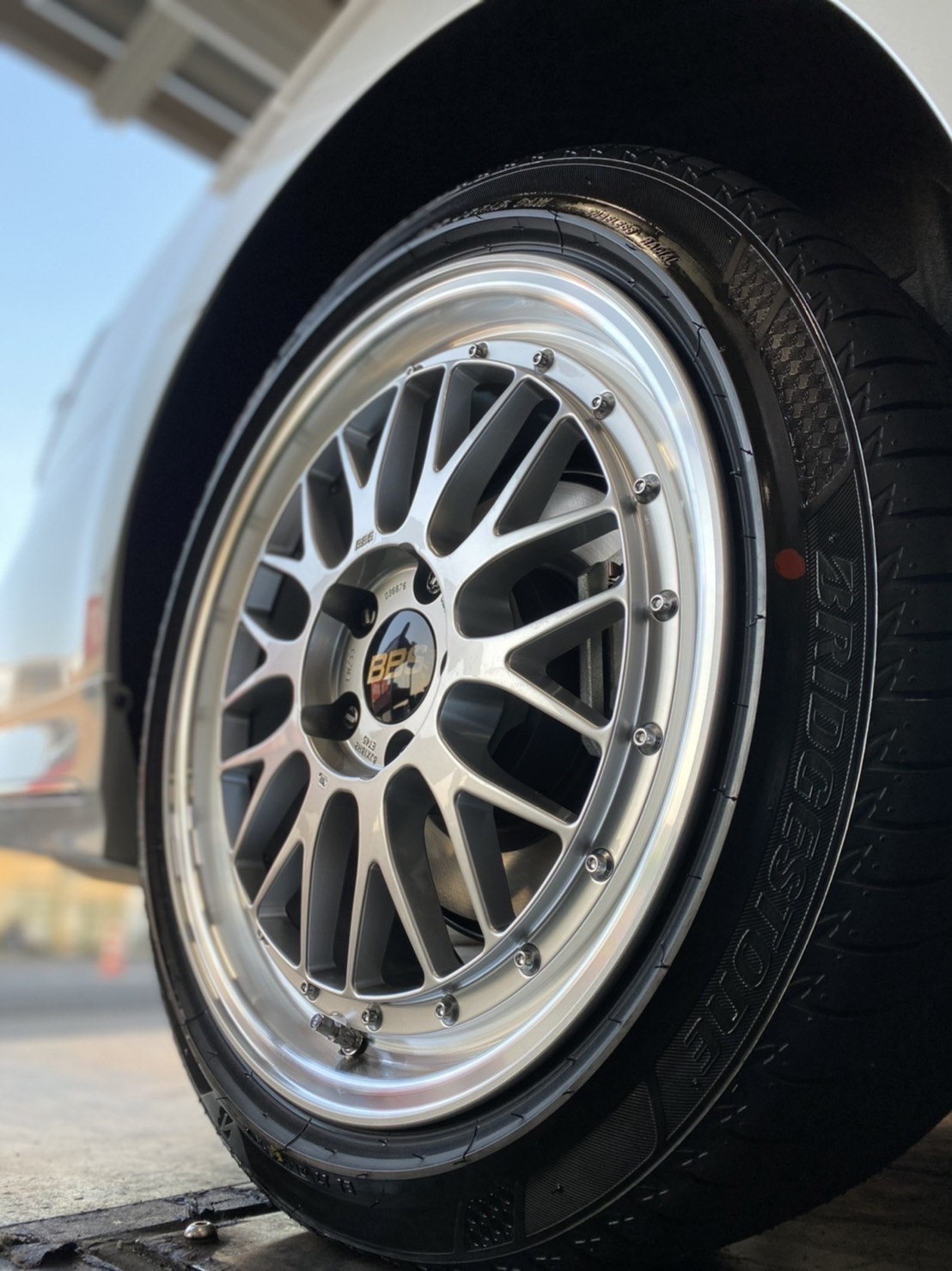 純正の黒のホイールから白系のカラーのホイールにさせて頂きました!