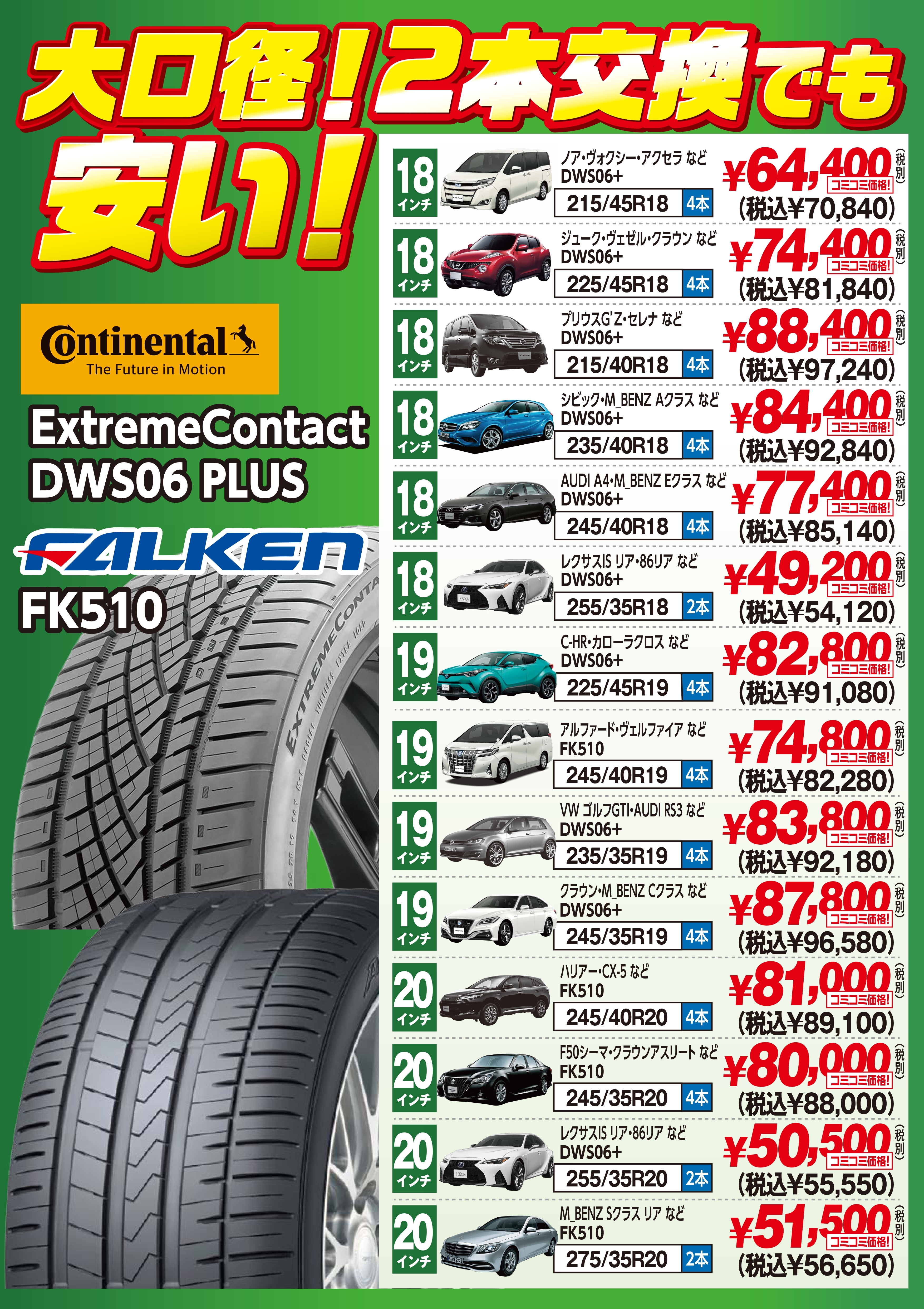 大口径タイヤ!4本でも!2本でも!安い!セール開催中‼