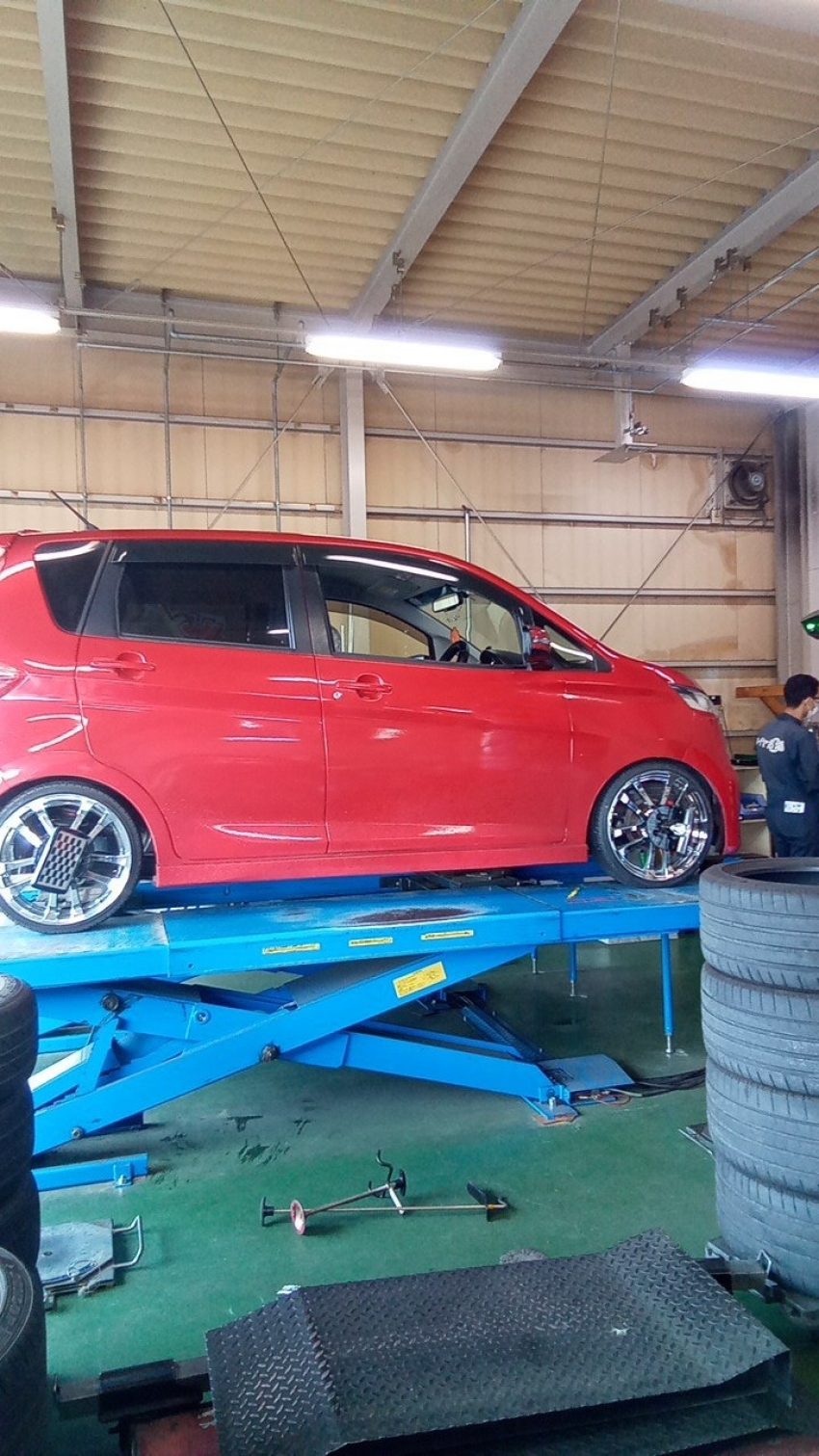 車高調をされた直後で真っ直ぐ走らないとの事で、アライメント調整にご来店頂きました( *´艸`)