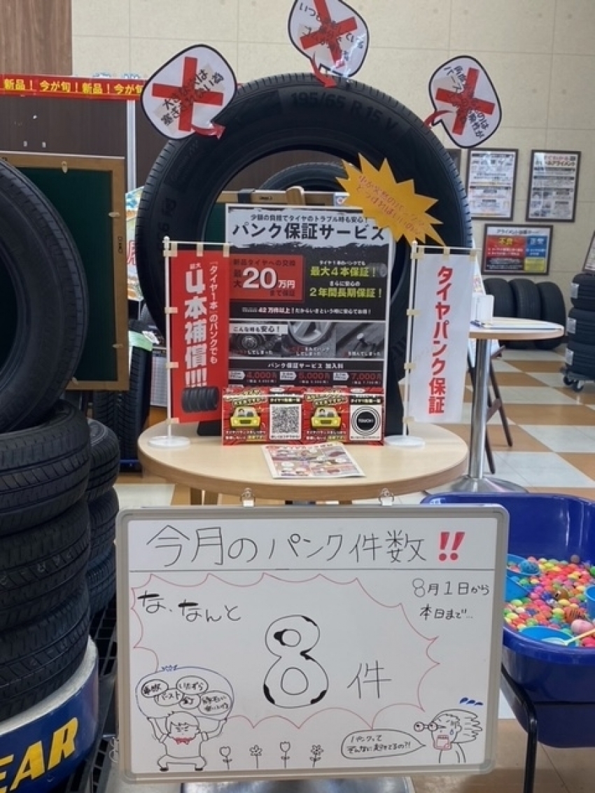 なんと8月に入ってパンクでのご来店がもう8件です、、、