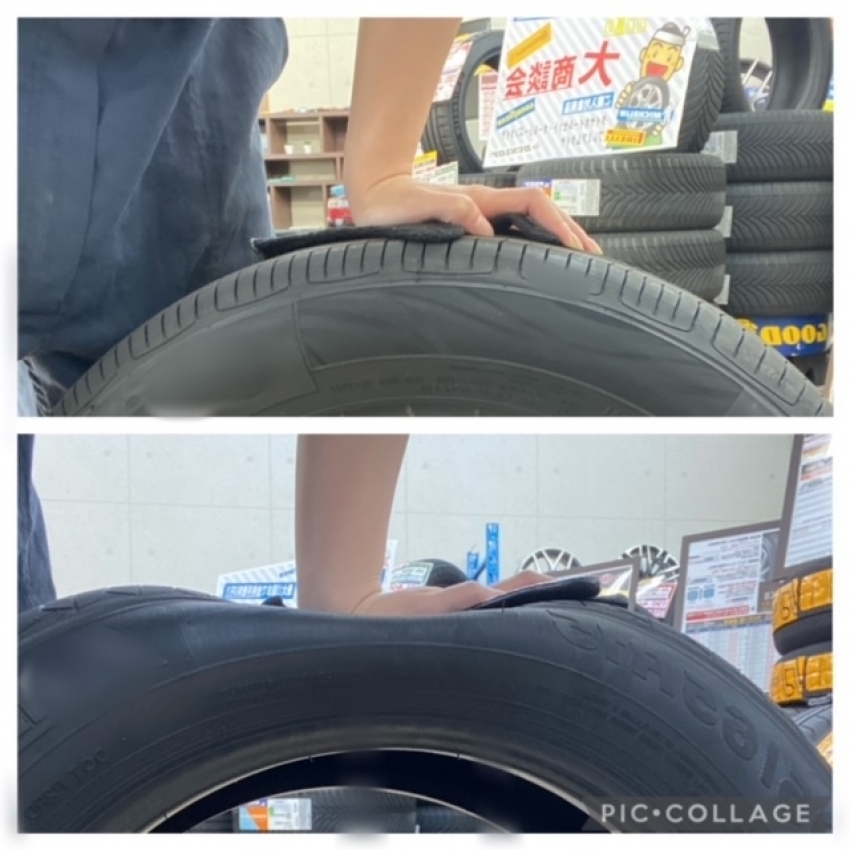 押して!→タイヤを立てている状態で上から押してみて下さい!