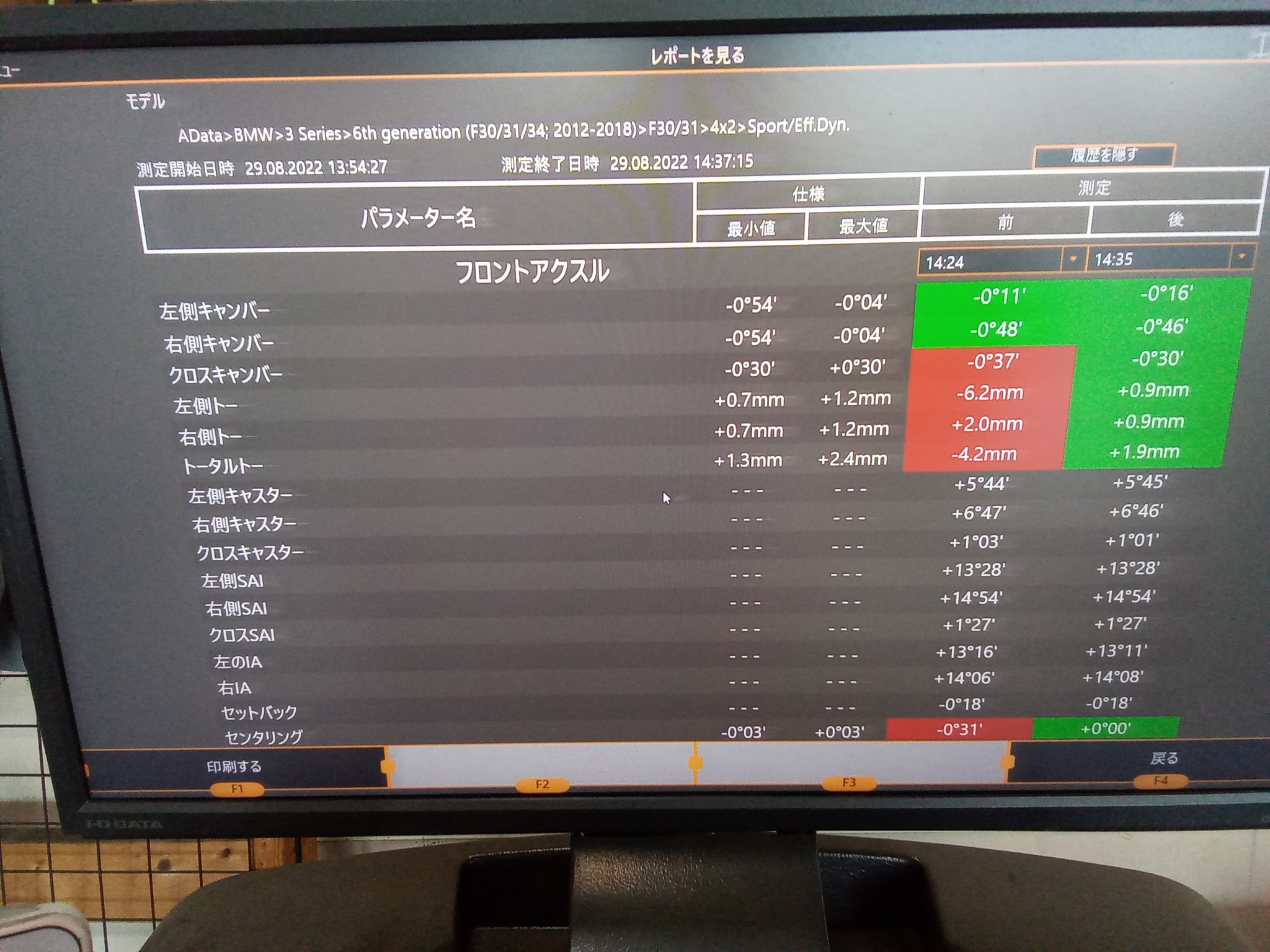 フロントのトー及びリアのトー、キャンバーにズレがありました!こ、これは・・・(; ・`д・´)