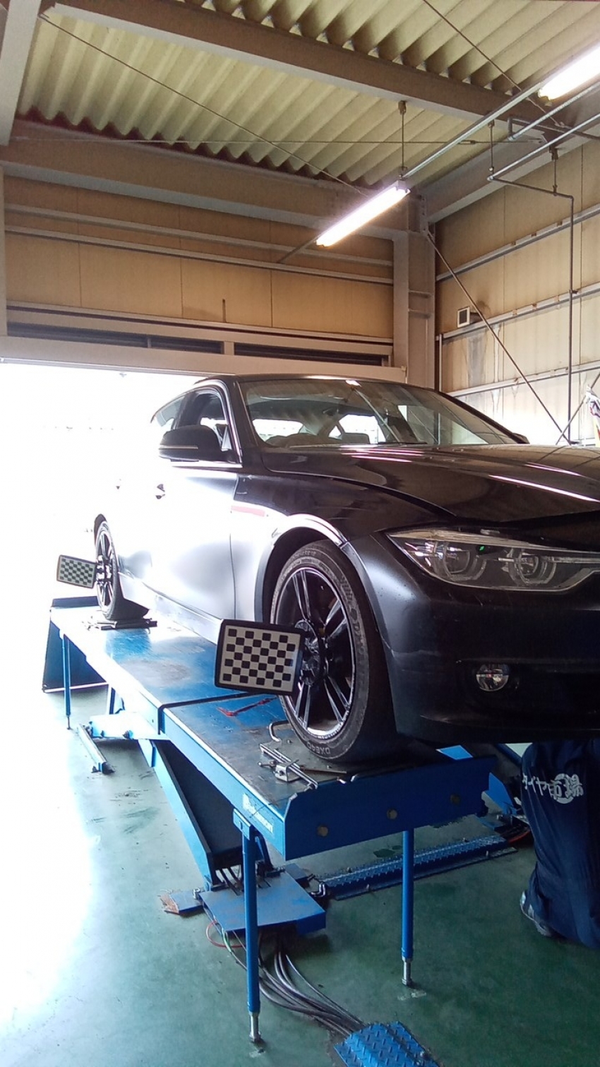 先日、BMW 3シリーズのアライメント調整を施工致しました!