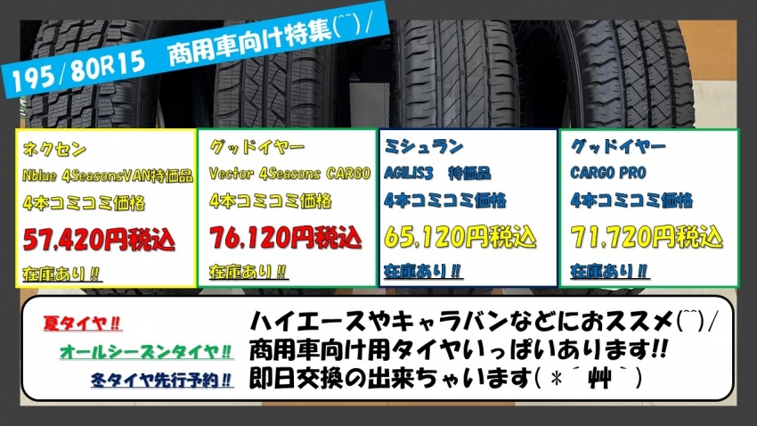 ハイエース・キャラバン用タイヤ特集(^^)タイヤが安い‼