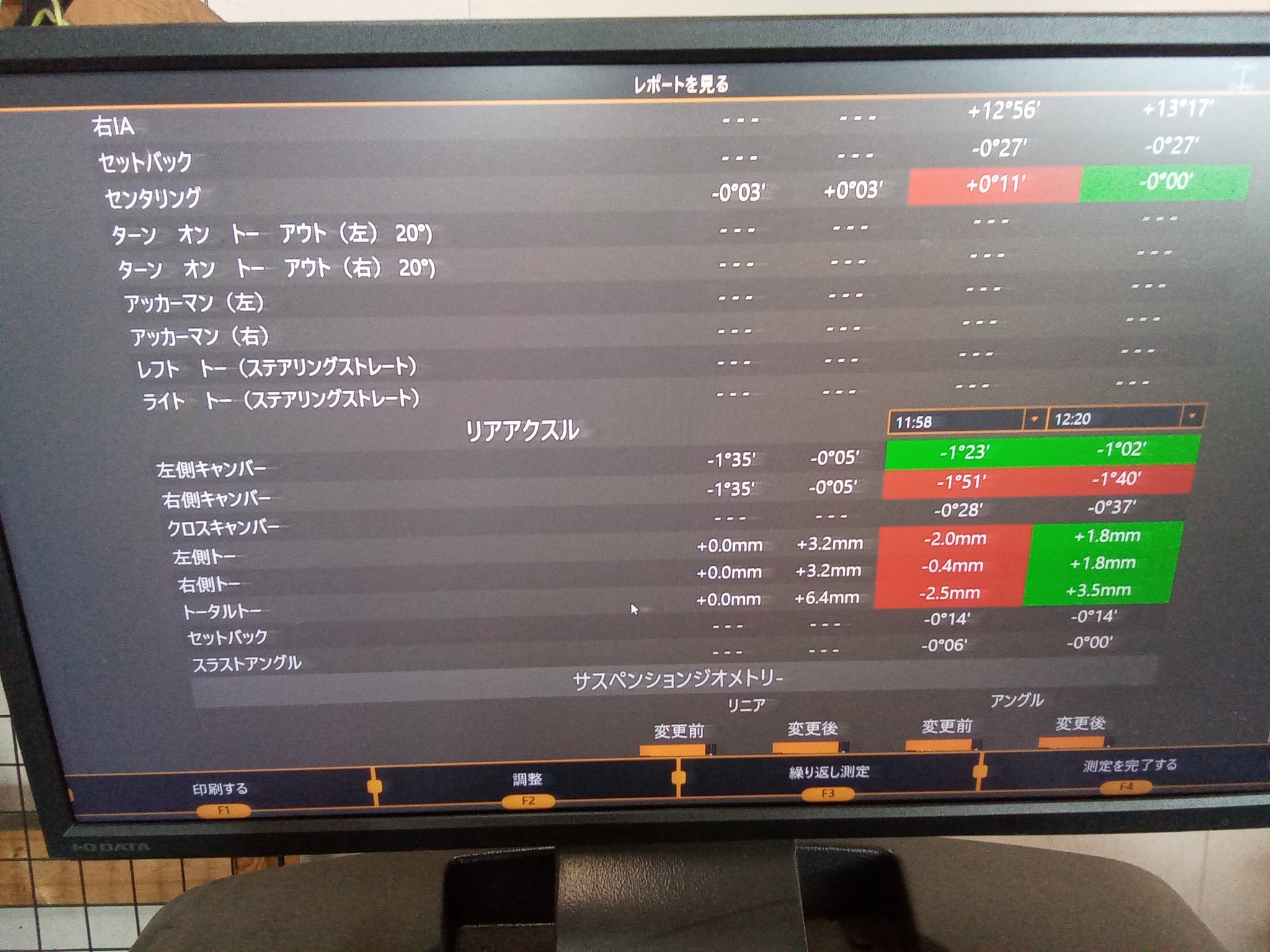 リアタイヤを縁石にぶつけてしまったという事で、アライメント調整を行いました( *´艸`)