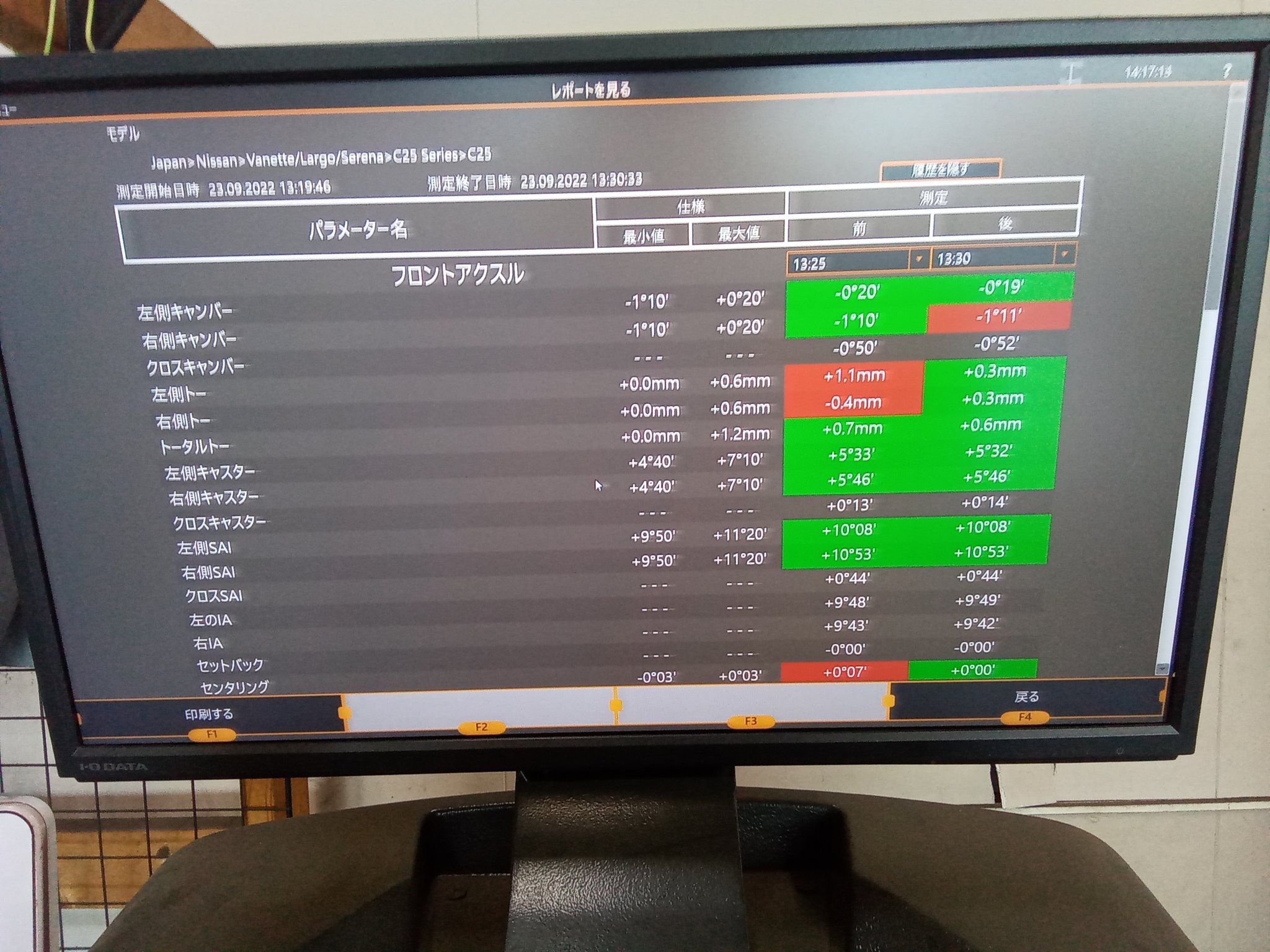 タイヤが片減りしておりましたので、アライメント調整を行いました( *´艸`)