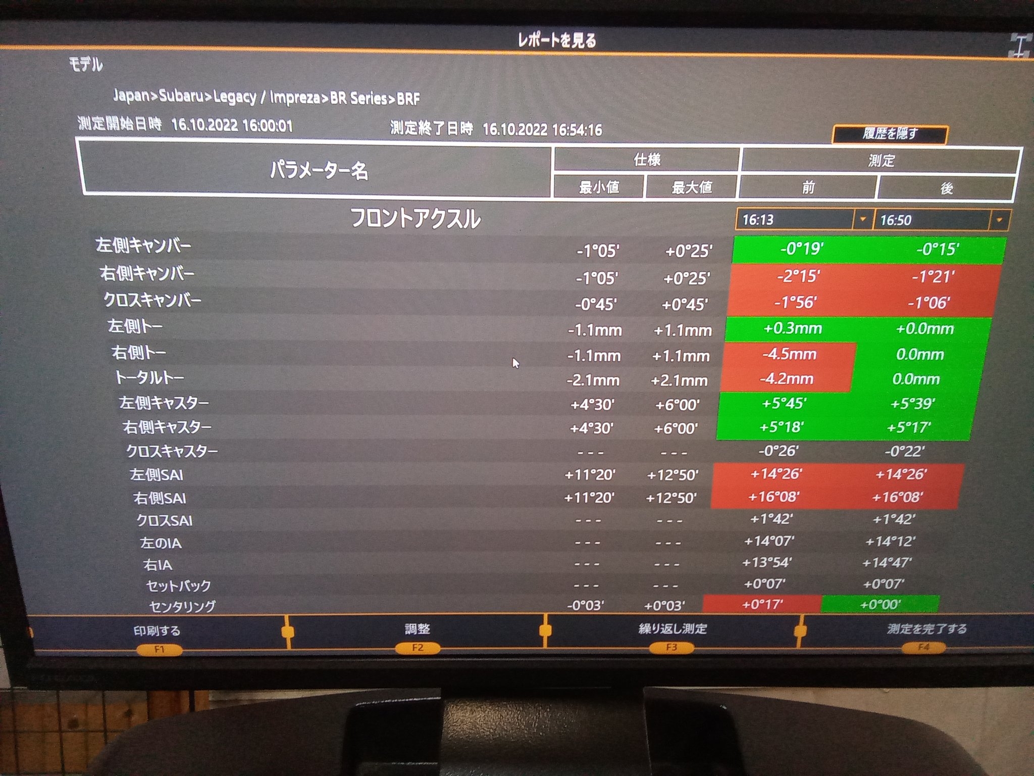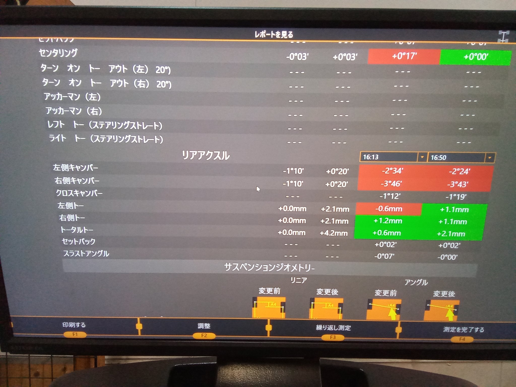 フロントキャンバーも、ご希望の基準値に近い所で