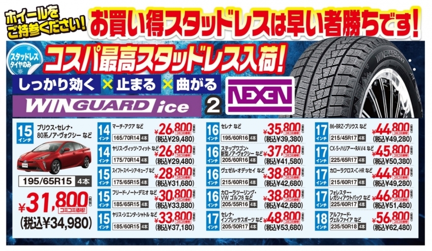軽自動車、ミニバン、SUVタイヤも種類豊富に在庫あります。