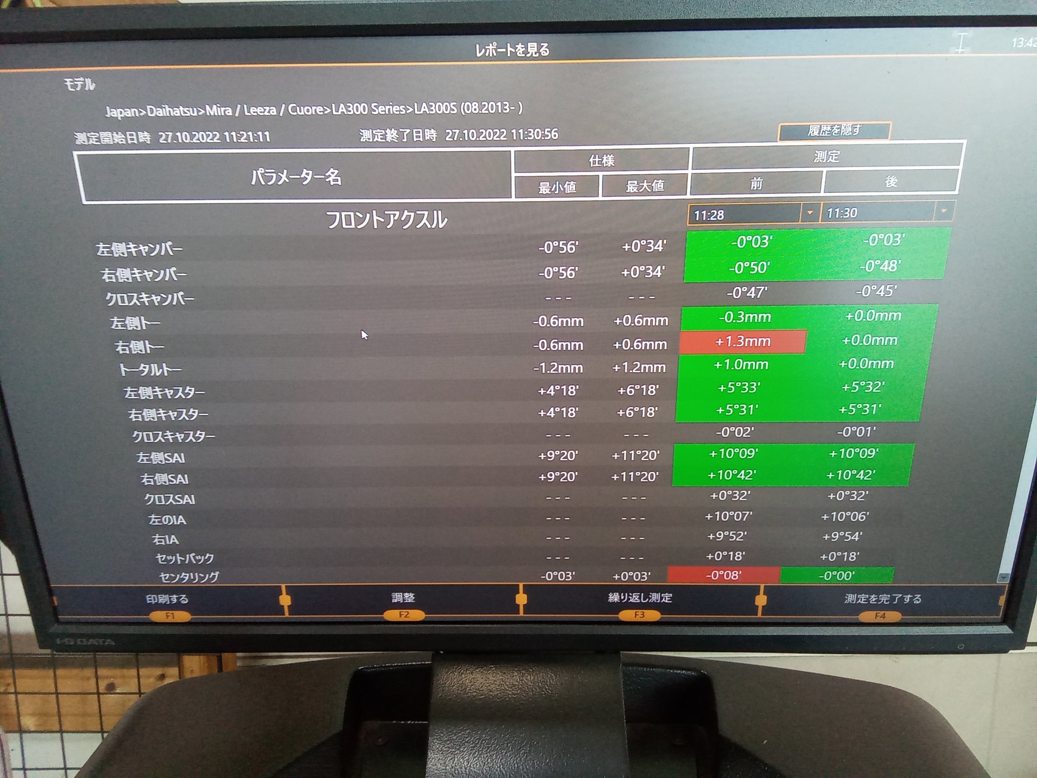 タイヤが片減りしておりましたので、アライメント調整を行いました( *´艸`)