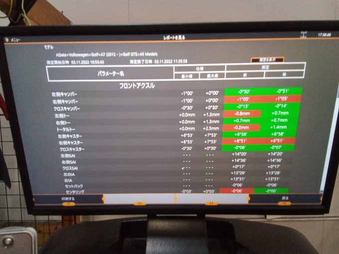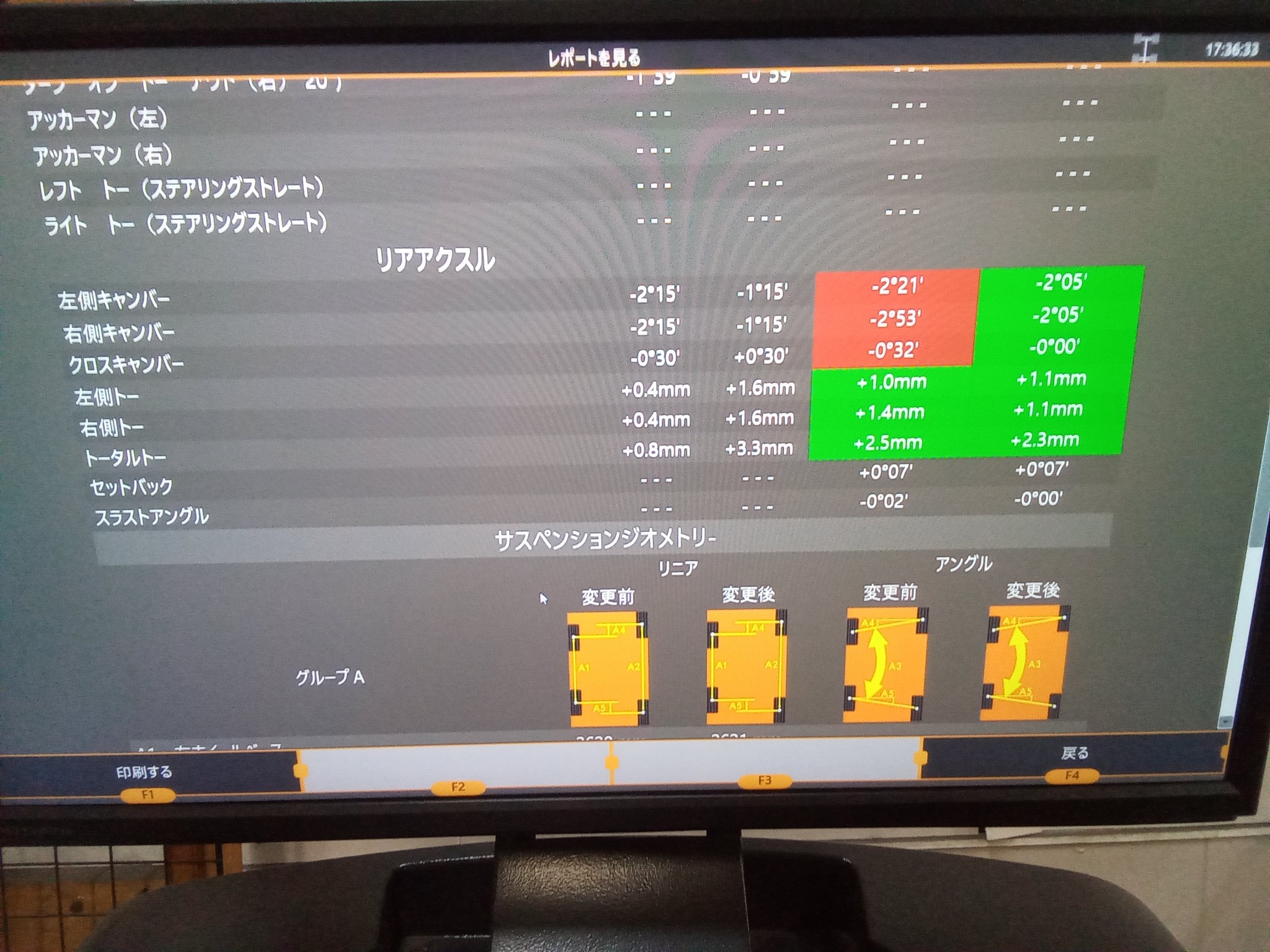 フロントのトー及びリアのキャンバーにズレありました!こ、これは・・・(; ・`д・´)