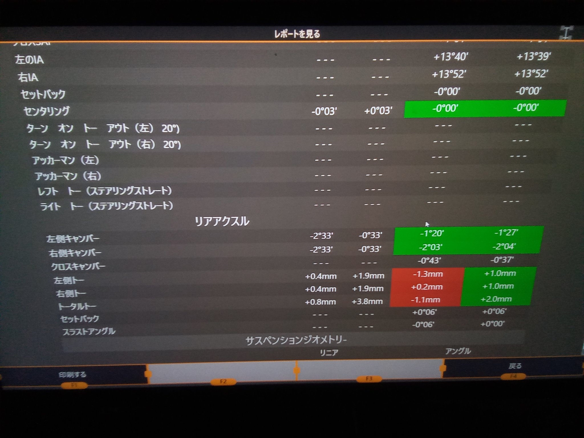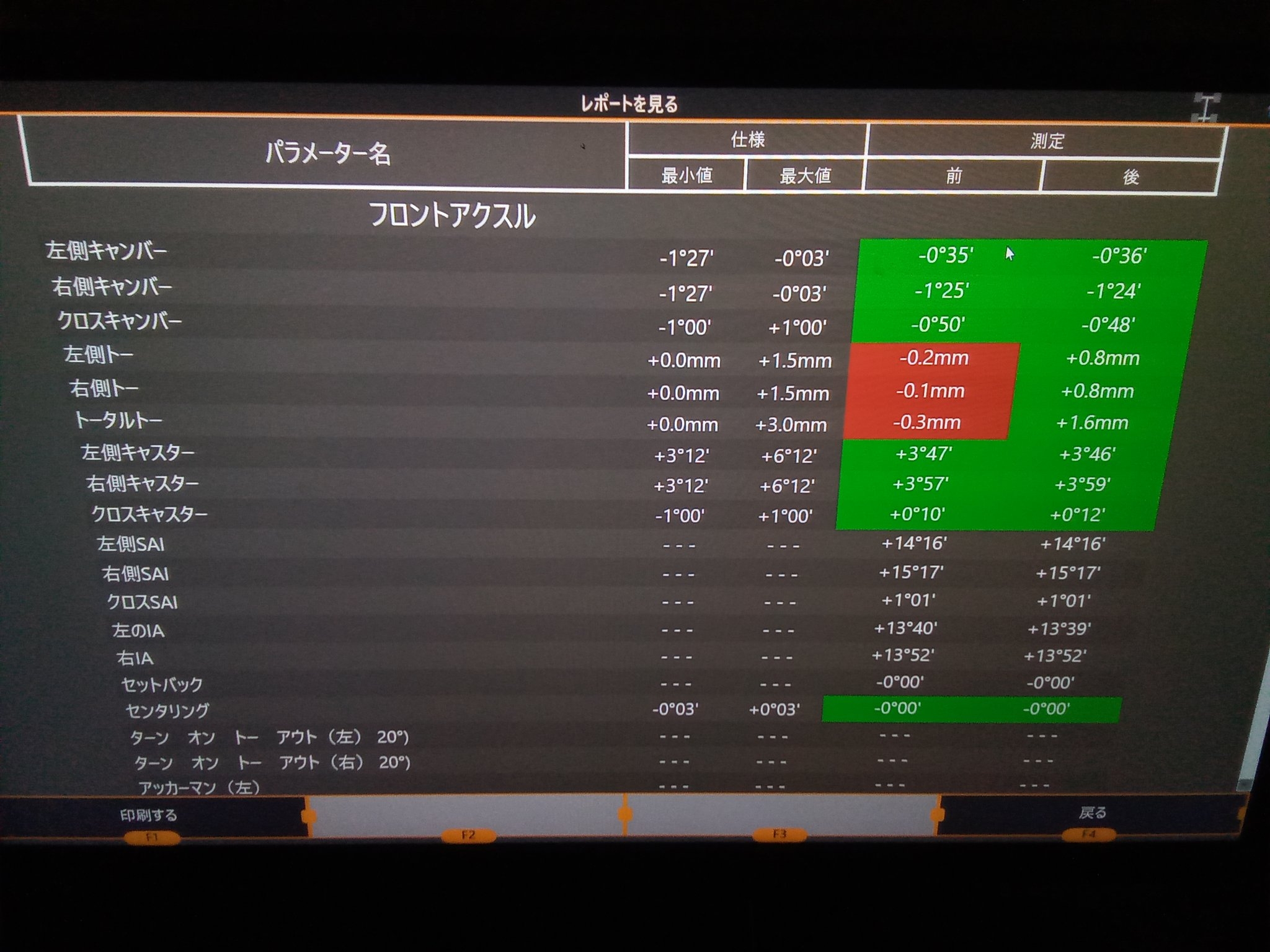 フロント及びリアのトーにズレありました!こ、これは・・・(; ・`д・´)