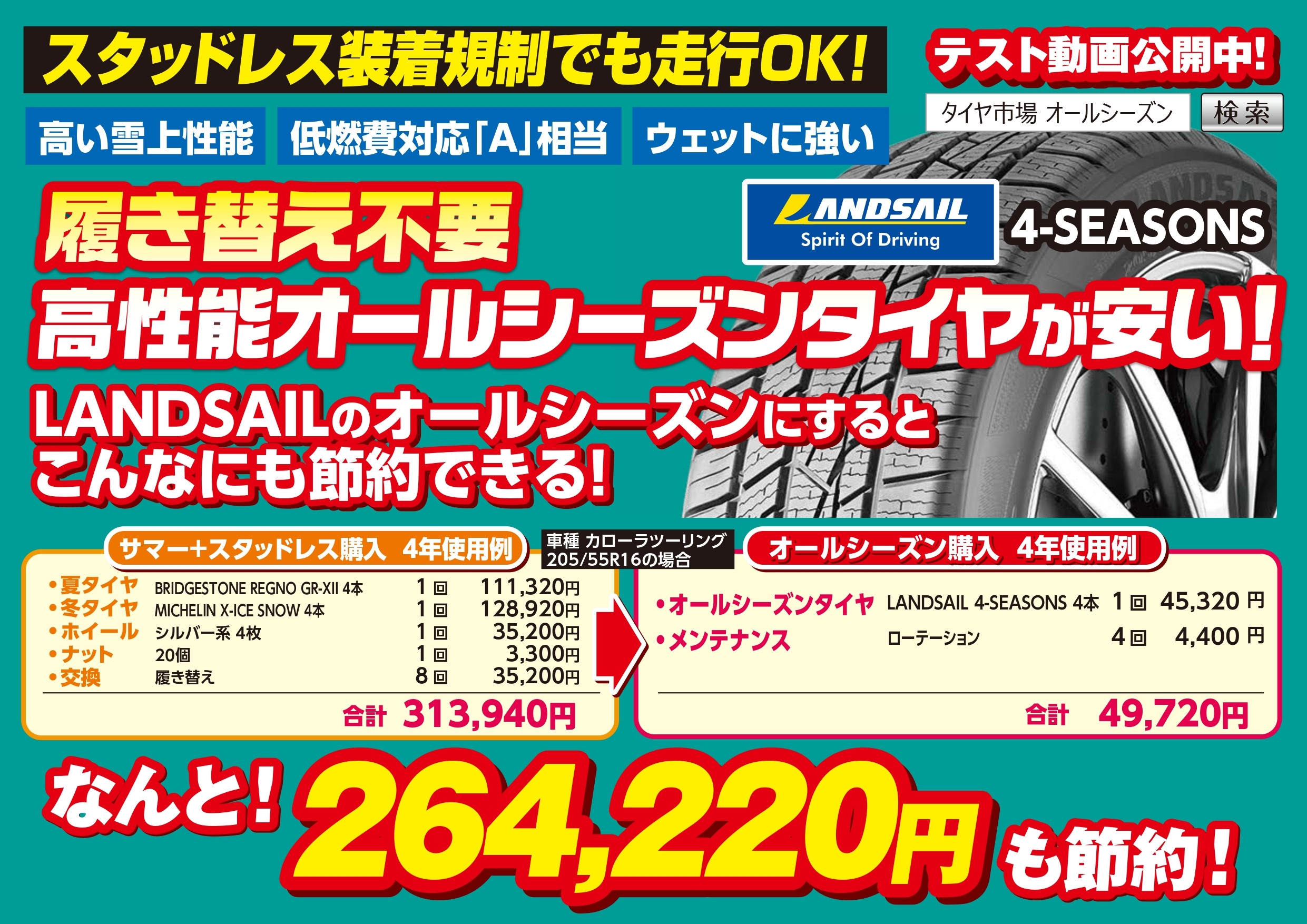 タイヤが安い!在庫全品売り尽くし!セール開催中!夏タイヤ・冬タイヤ・オールシーズンタイヤ!ぜ~んぶ安い!オールシーズンタイヤ特集!こんなにもお得?!
