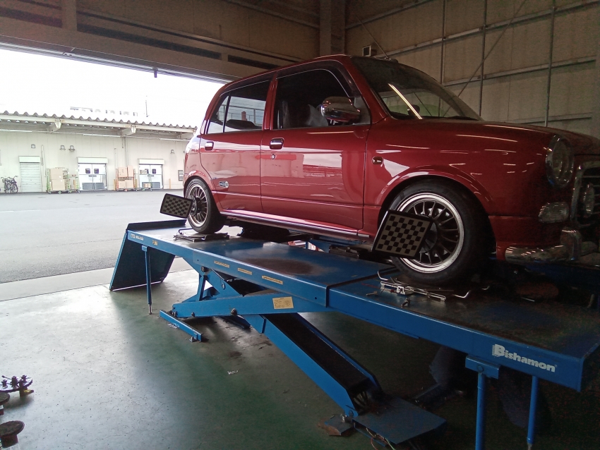 ダイハツ→ミラジーノ アライメント調整 足利 太田 桐生 邑楽 千代田町 付近でのアライメント調整は是非当店へお越しください