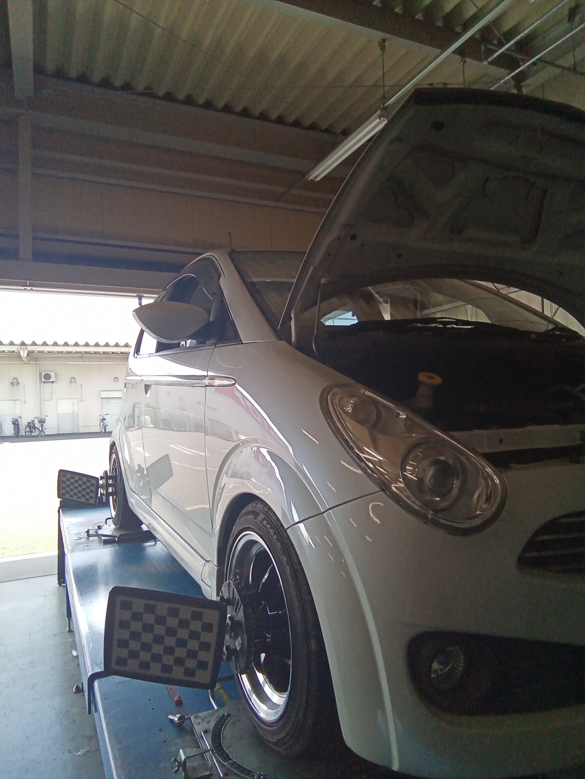 スバル→R2 アライメント調整 足利 太田 桐生 邑楽 千代田町 付近でのアライメント調整は是非当店へお越しください