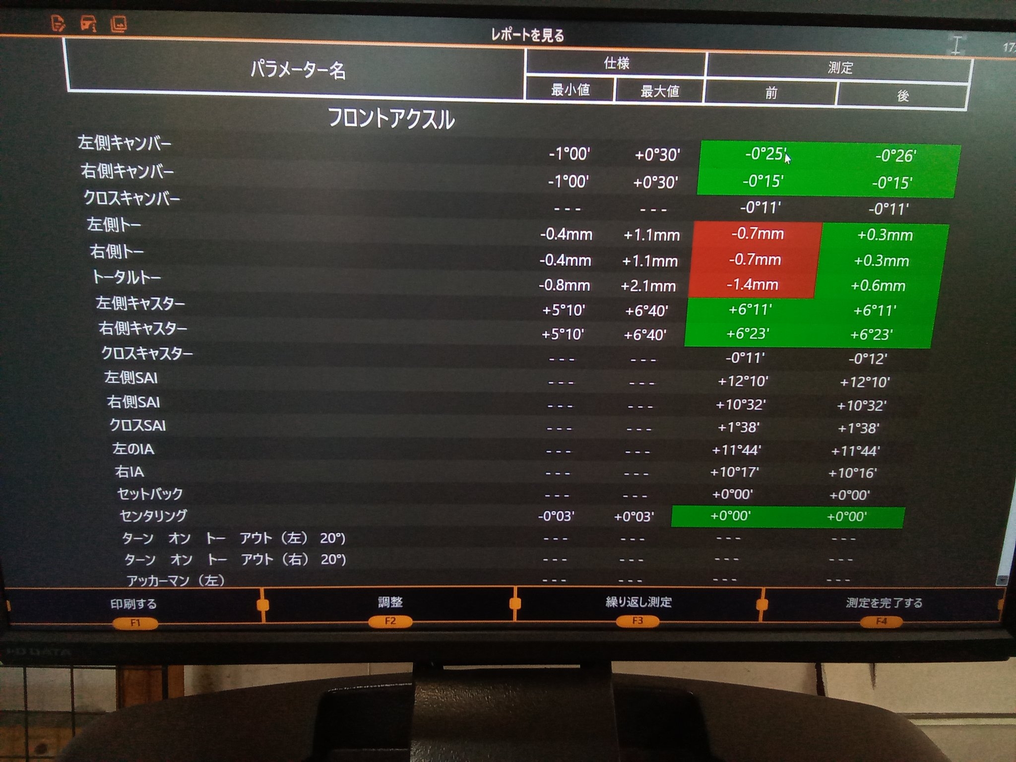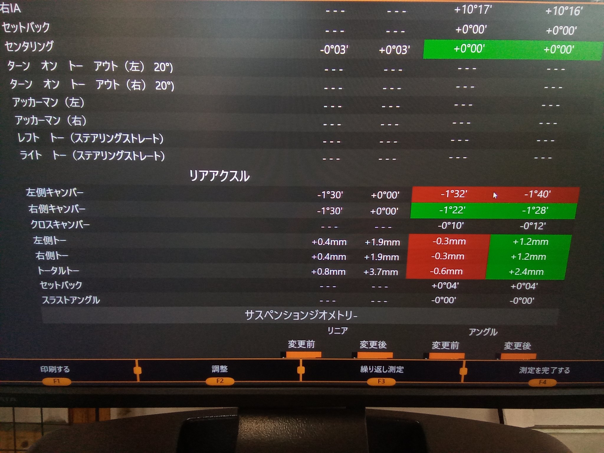 フロントとリアタイヤの内減りが起こっていた為、アライメント調整を行いました( *´艸`)
