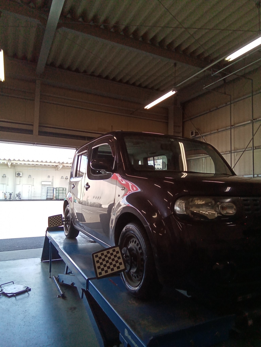 日産 キューブ アライメント調整 in タイヤ市場足利店!!普通は超高いアライメント調整がディーラーの半額以下で!! 足利・太田・桐生エリアにお住いの方、その他の地域にお住いの方も是非!