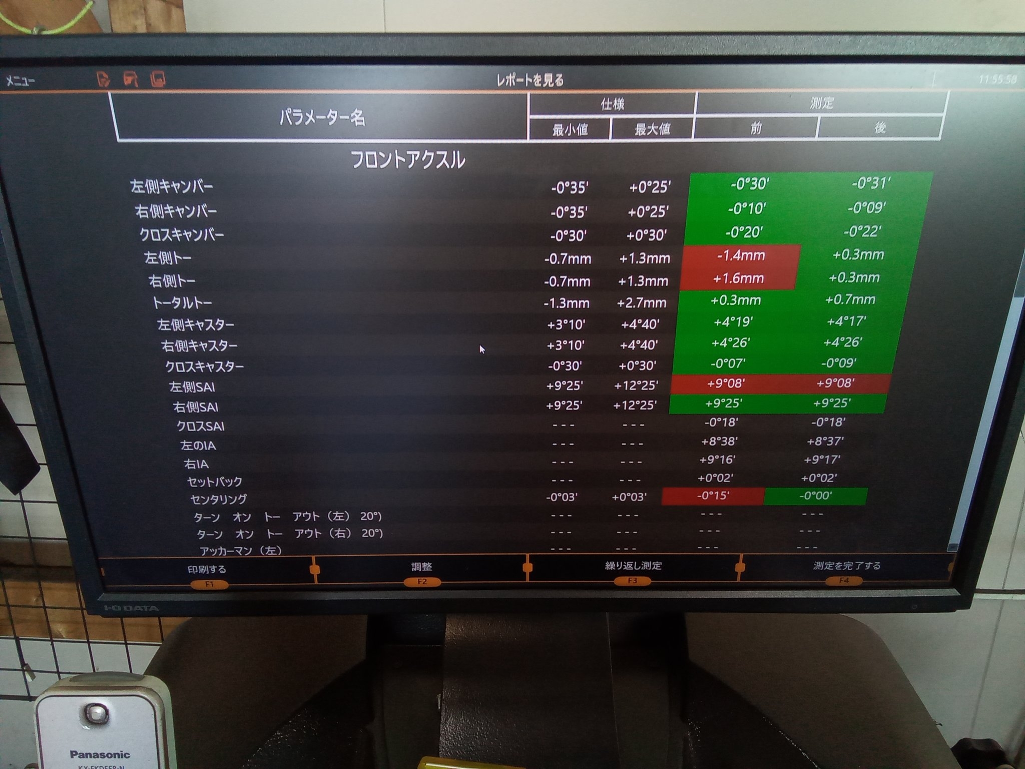 フロント左のトーが1.4mmトーアウト、フロント右のトーが1.6mmトーイン