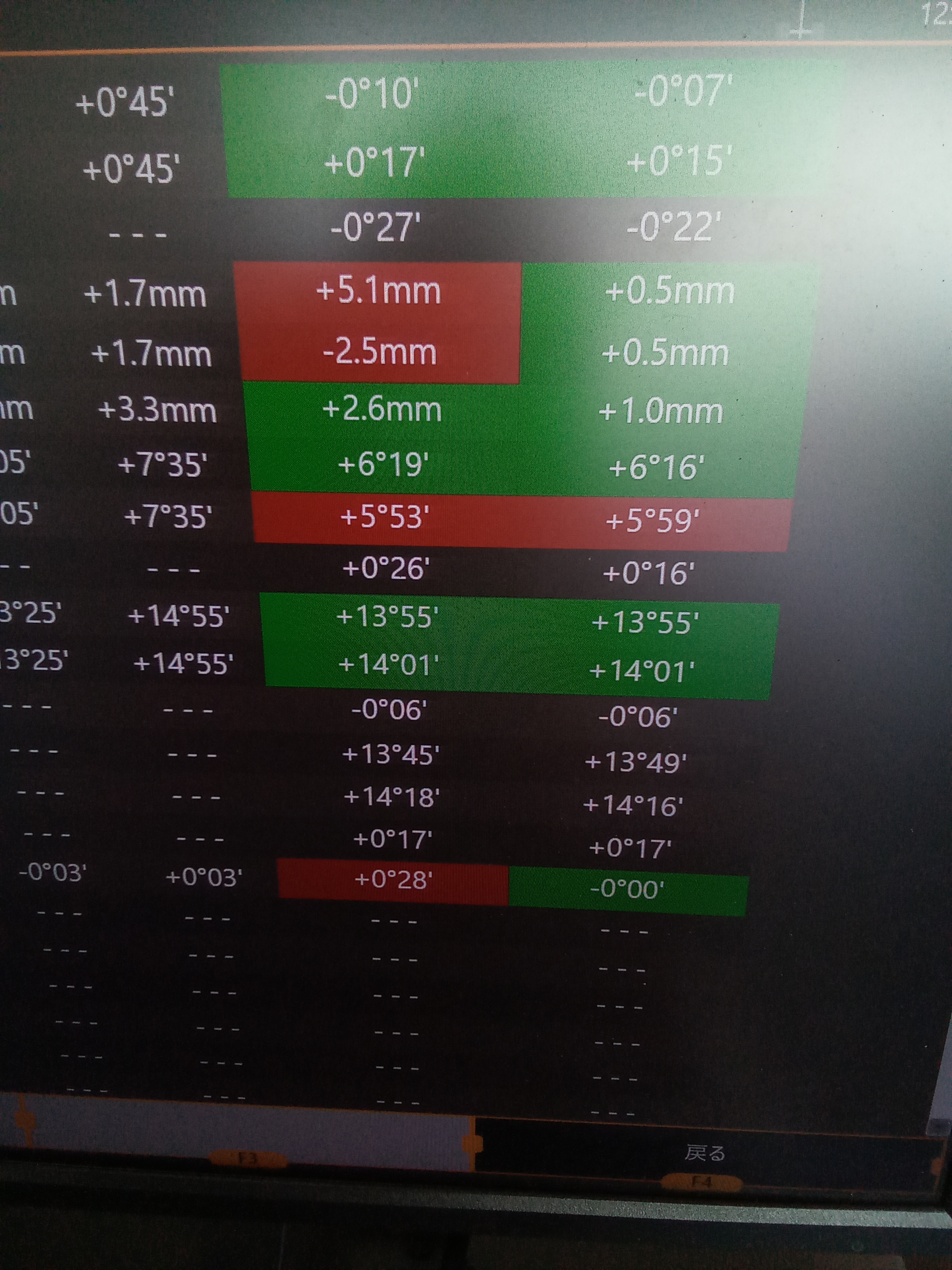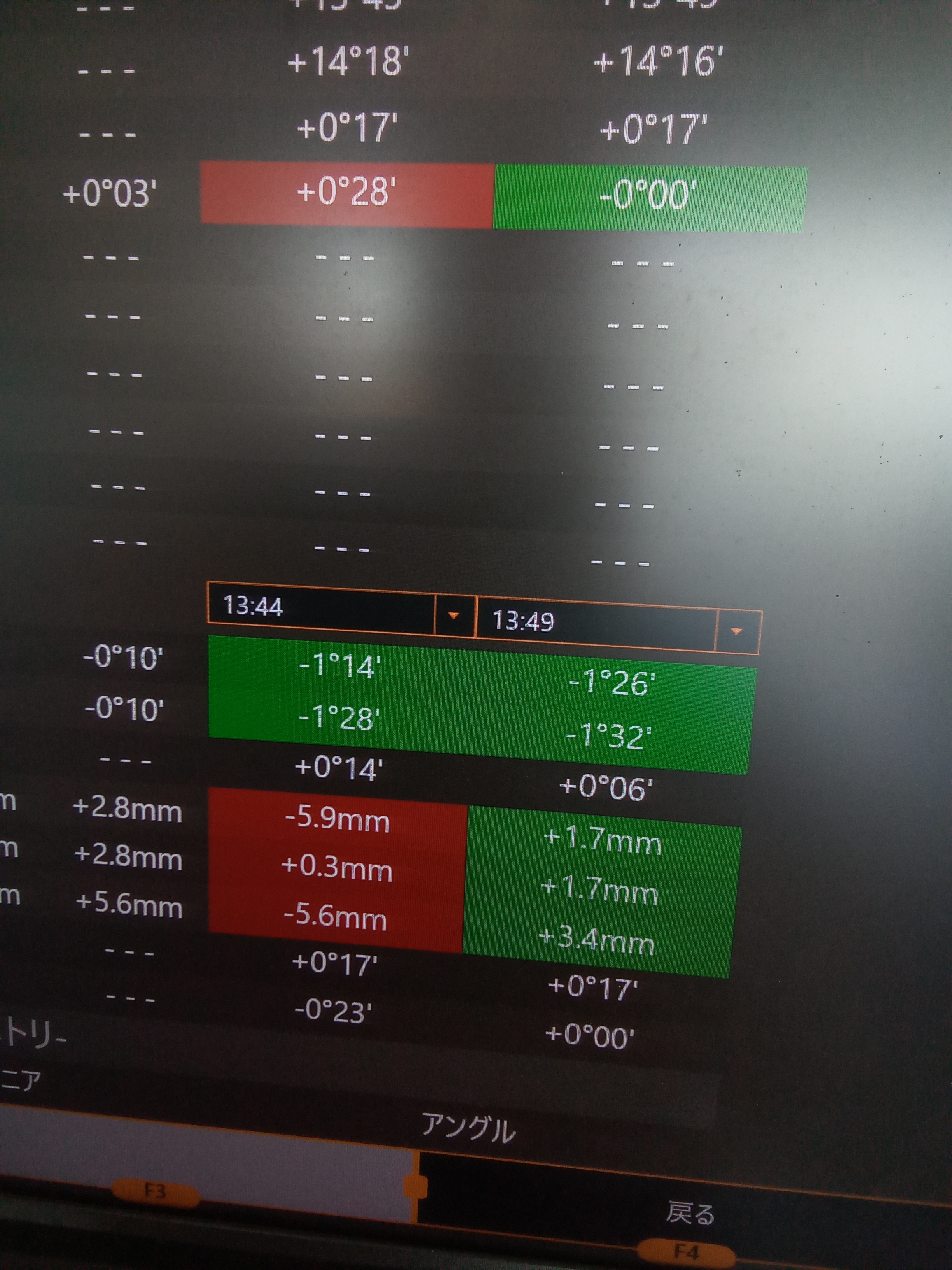 測定して見たらトゥ角がかなり基準値からズレてありました!!!