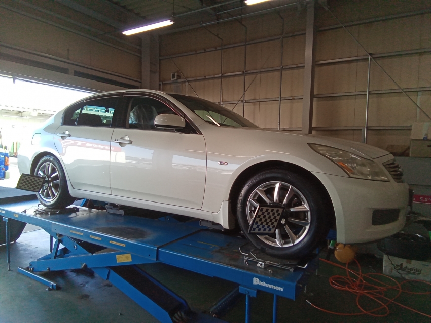 スカイライン V36 タイヤ交換とアライメント調整作も当店へ...‼!
