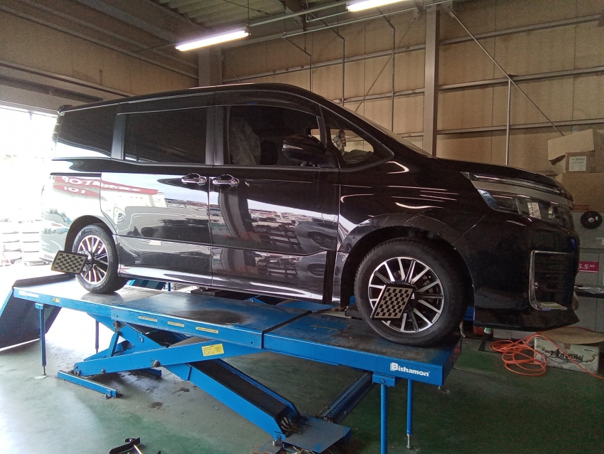 トヨタ ヴォクシー アライメント調整 in タイヤ市場足利店!!普通は超高いアライメント調整がディーラーの半額以下で!! 足利・太田・桐生エリアにお住いの方、その他の地域にお住いの方も是非!