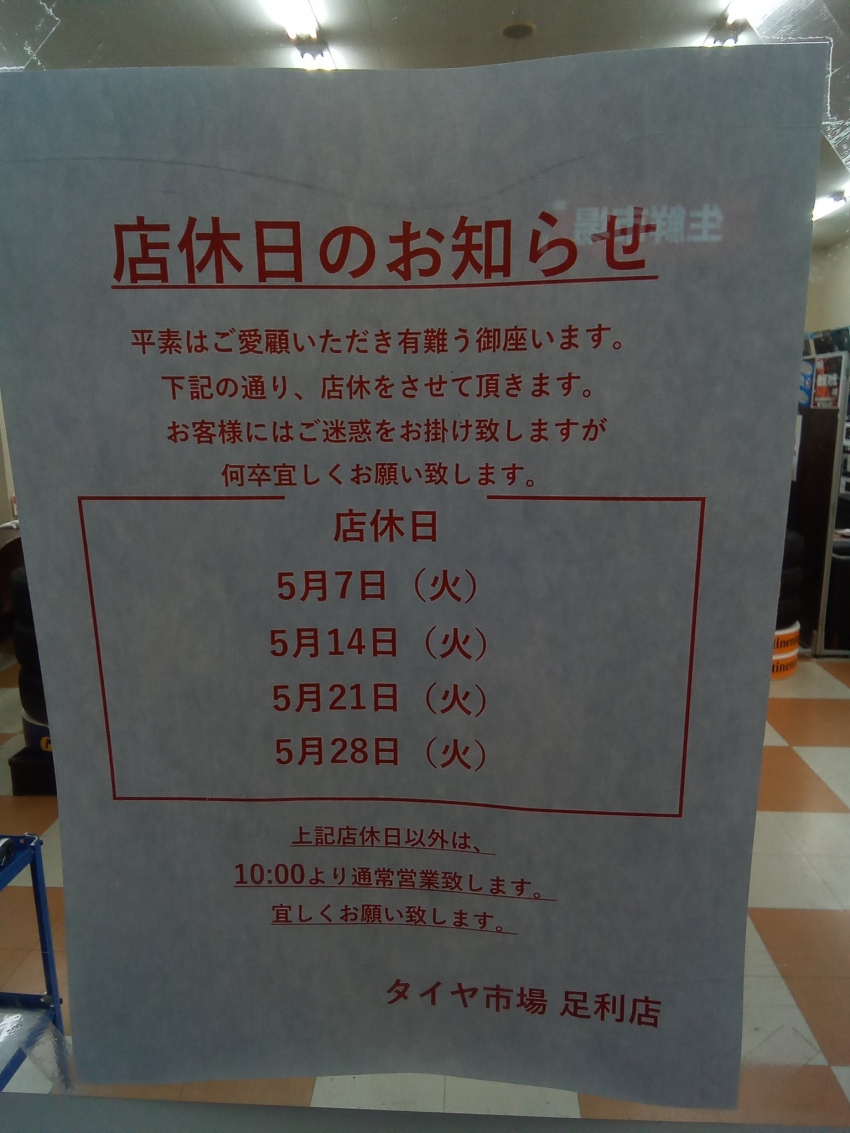皆様、こんにちは!タイヤ市場足利店です!!