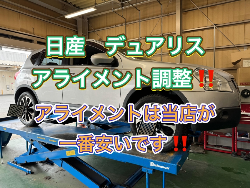 日産 デュアリス アライメント調整 in タイヤ市場足利店!!普通は超高いアライメント調整がディーラーの半額で!! 足利・太田・桐生エリアにお住いの方、その他の地域にお住いの方も是非!