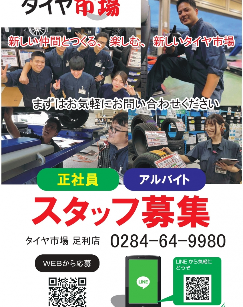 タイヤ市場足利店で一緒に働きませんか?楽しく働けますよ☺