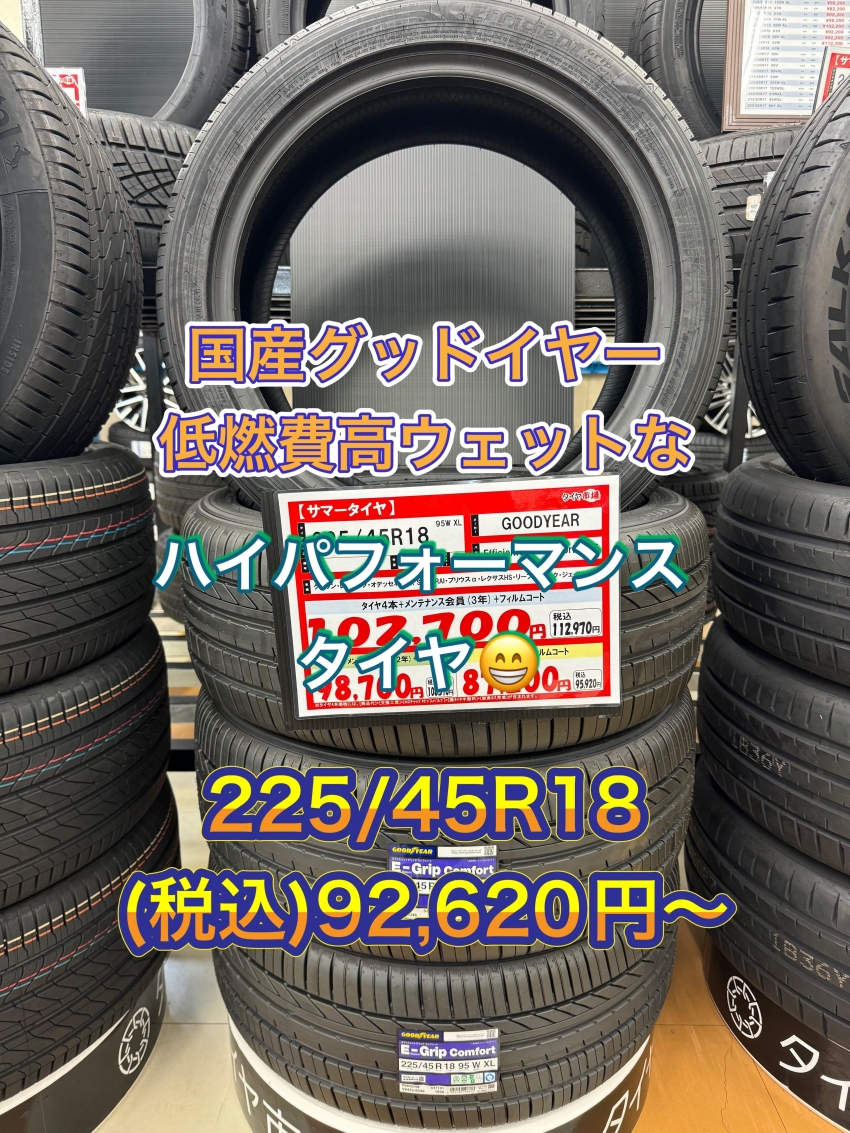 【国産夏タイヤが安い!!】当店おススメの国産夏タイヤのグッドイヤー!!高性能な逸品です!タイヤ交換を迷っている方、是非当店までお越しください!!足利以外にも太田・桐生・邑楽エリアにお住いの方、その他の地域にお住いの方も是非!