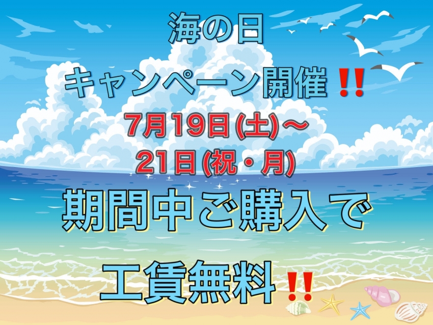 【タイヤが安く買える!!】海の日キャンペーン開催!!タイヤ市場足利店では7月19日(土)~21日(祝・月)において海の日キャンペーンと題して工賃無料セールを開催します!!全ての方が対象となります!!足利・太田・桐生・邑楽エリアにお住いの方、その他の地域にお住いの方も是非!