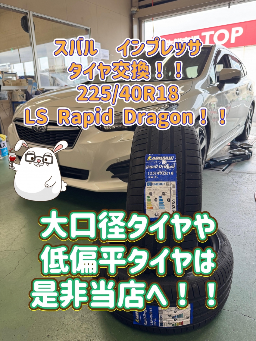 スバル インプレッサ タイヤ交換お任せ頂きました!!タイヤはアジアンメーカーのランドセイル Rapid Dragon!!大口径タイヤの交換なら当店へ!!!足利・太田・桐生・邑楽エリアにお住いの方、その他の地域にお住いの方も是非!