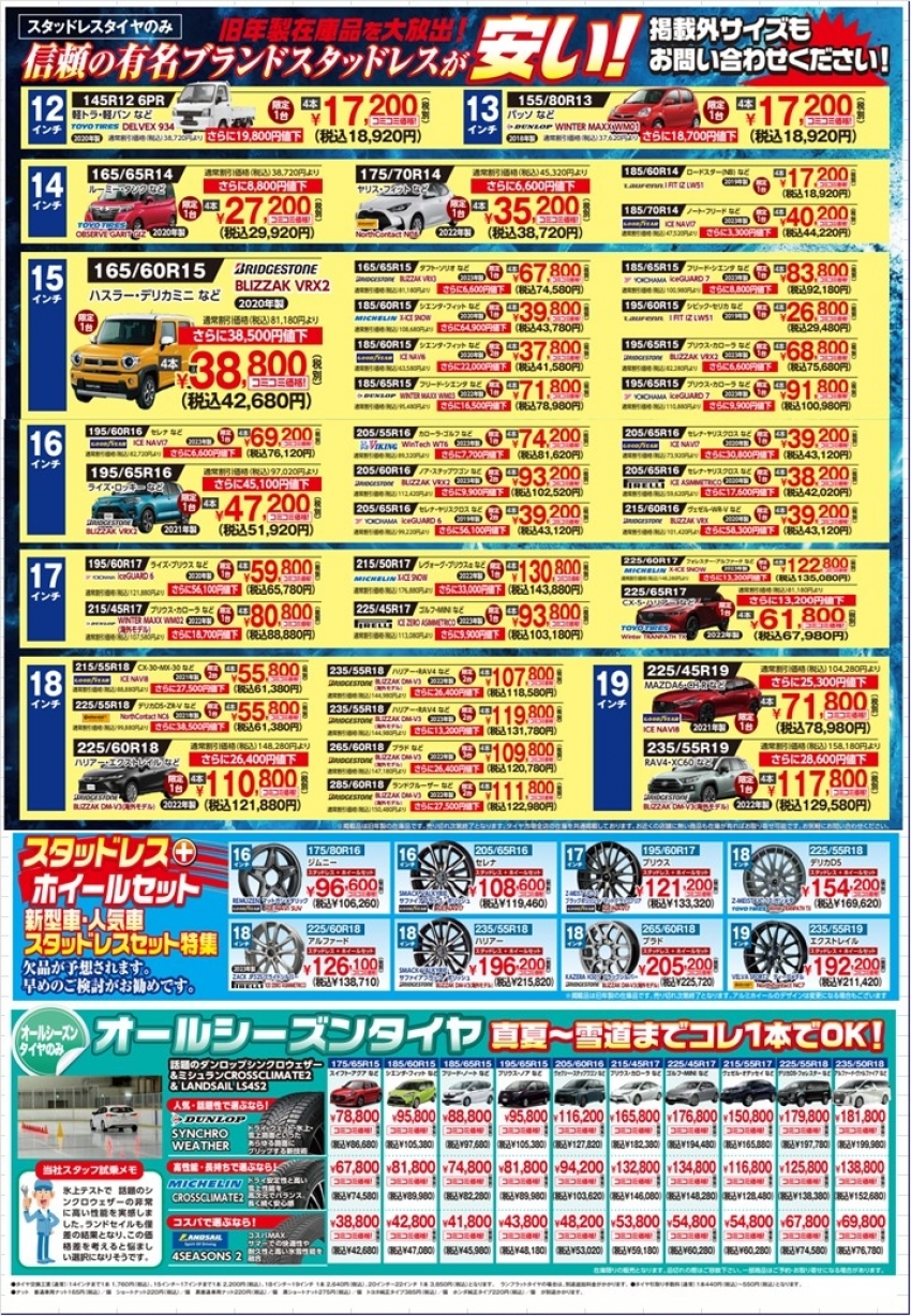 旧年製スタッドレスタイヤ大放出!シーズン前の今が安い!