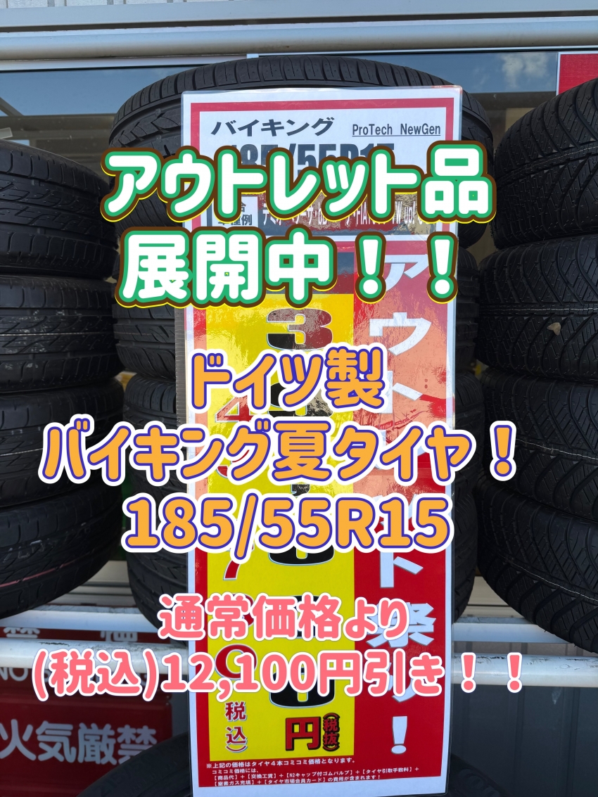 【旧年製タイヤが安い!!】185/55R15 ドイツ製夏タイヤ!!皆様、こんなレアサイズお探しでは御座いませんか?タイヤ市場足利店では、タイヤのアウトレットセールを開催中!!このお得な機会に是非お買い求め下さい!足利以外にも太田・桐生・邑楽エリアにお住いの方、その他の地域にお住いの方も是非!