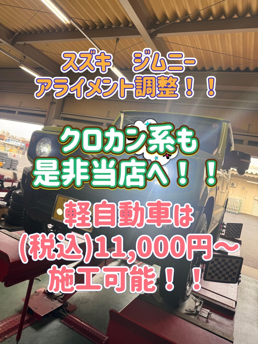本日、スズキ ジムニーのアライメント調整を施工致しました(*'ω'*)