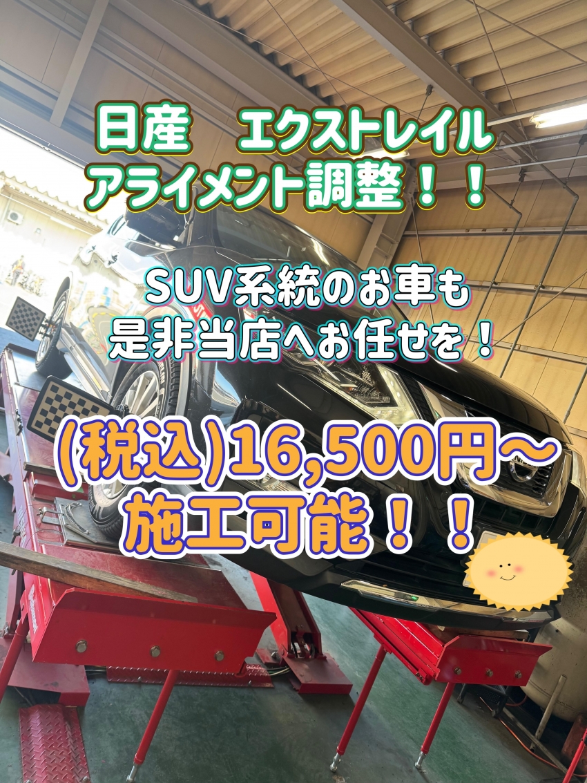 先日、日産 エクストレイルのアライメント調整を施工致しました(*'ω'*)