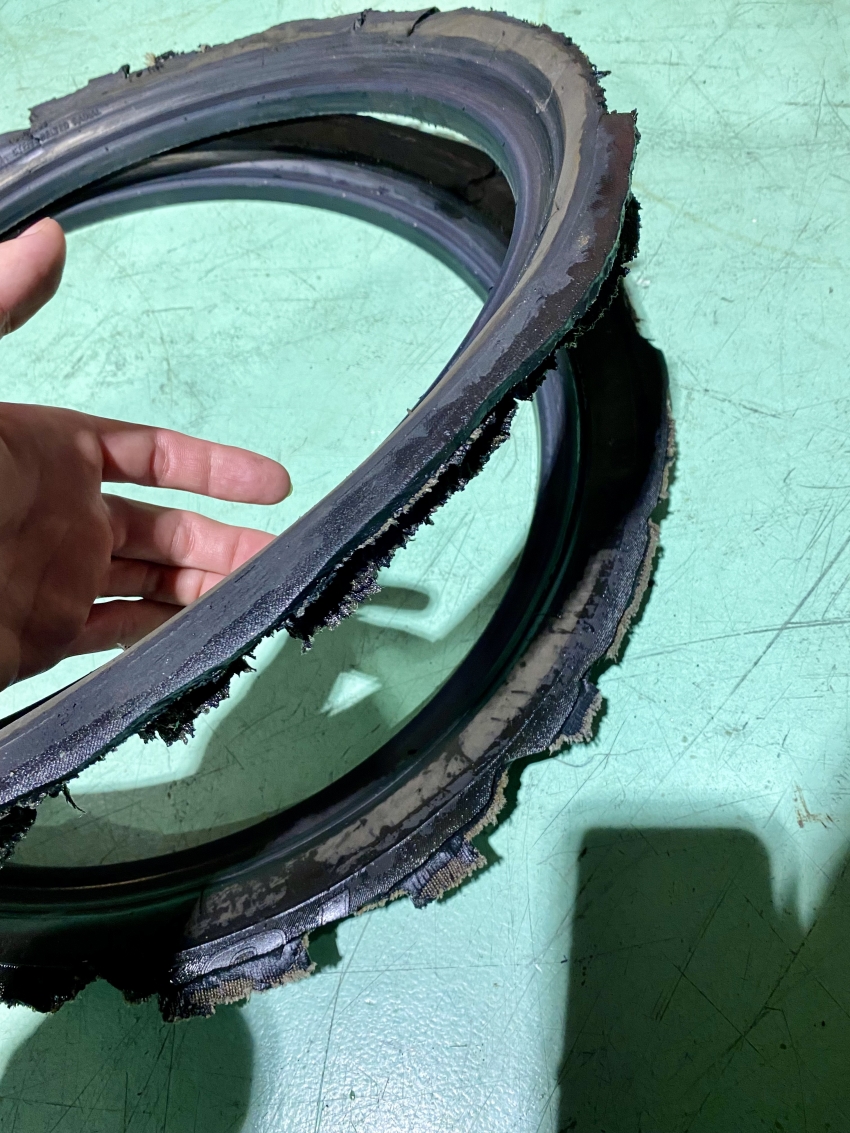 上の写真はホイールに残っていたビートと呼ばれる部分のみ、、