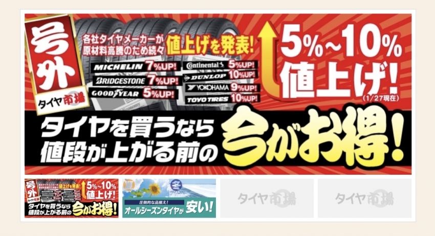 タイヤの値上げを発表しました(ノД`)・゜・。