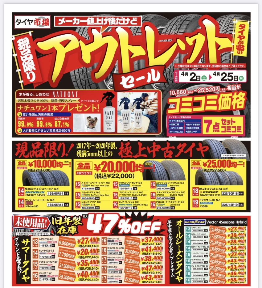 旧年製タイヤ!!中古タイヤ!!アウトレットセールを開催します!!