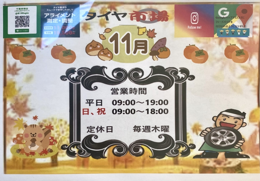 営業時間:AM9:00~PM6:00(日・祝 AM9:00~PM6:00)※木曜定休日