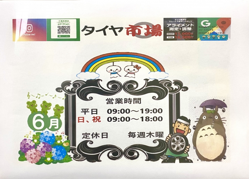 営業時間:AM9:00~PM6:00(日・祝 AM9:00~PM6:00)※木曜定休日