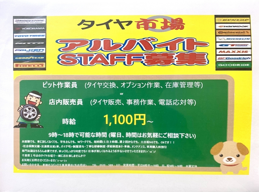 タイヤ市場千葉貝塚店で一緒に働きませんか!?(=゚ω゚)ノ