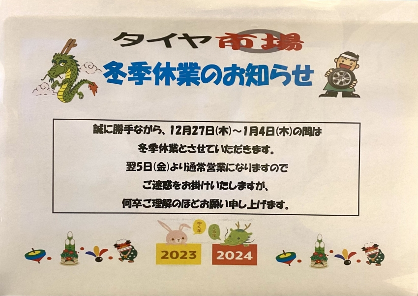 冬期休暇のご案内です!!