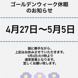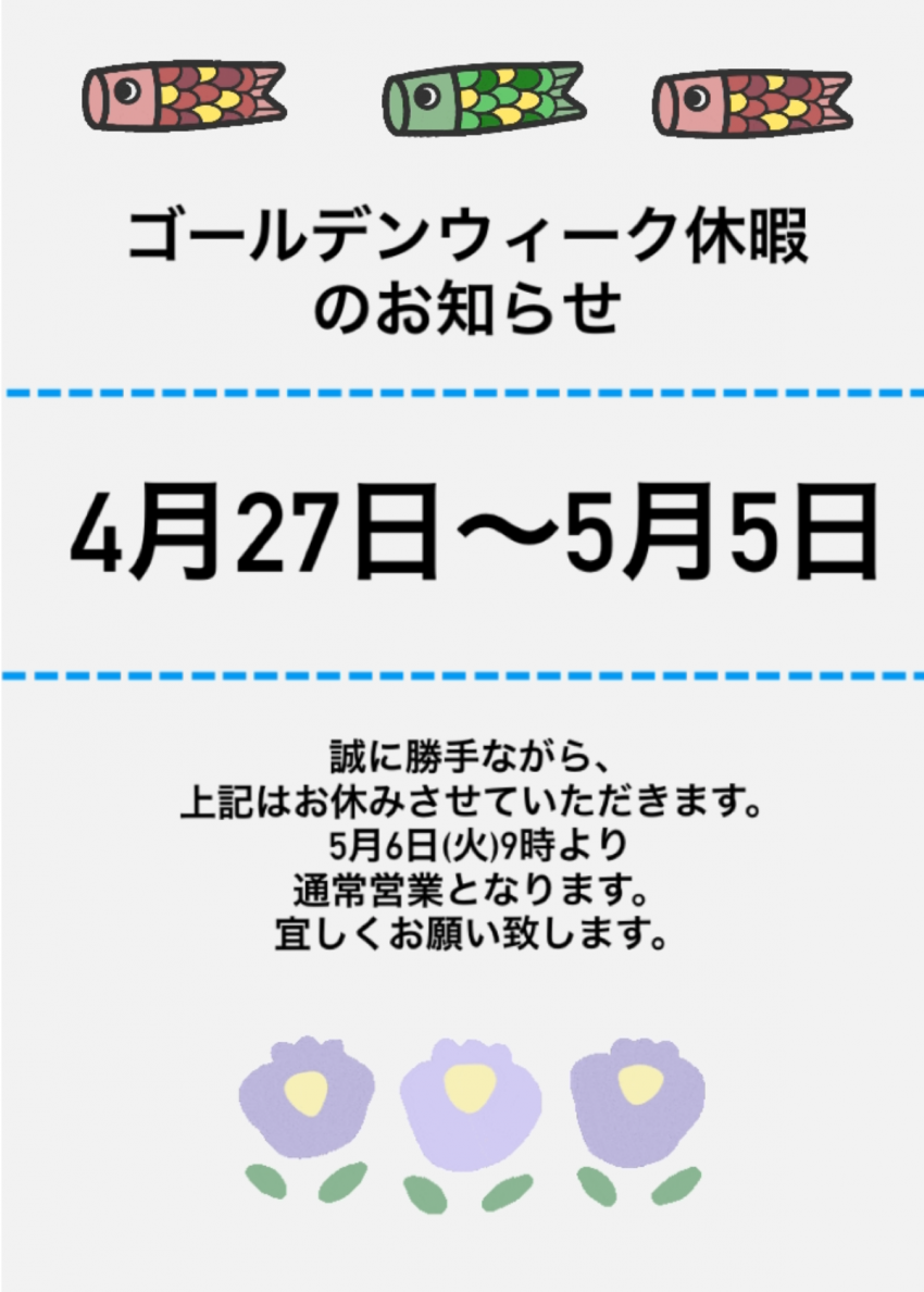 ゴールデンウィーク休暇のお知らせをいたします!